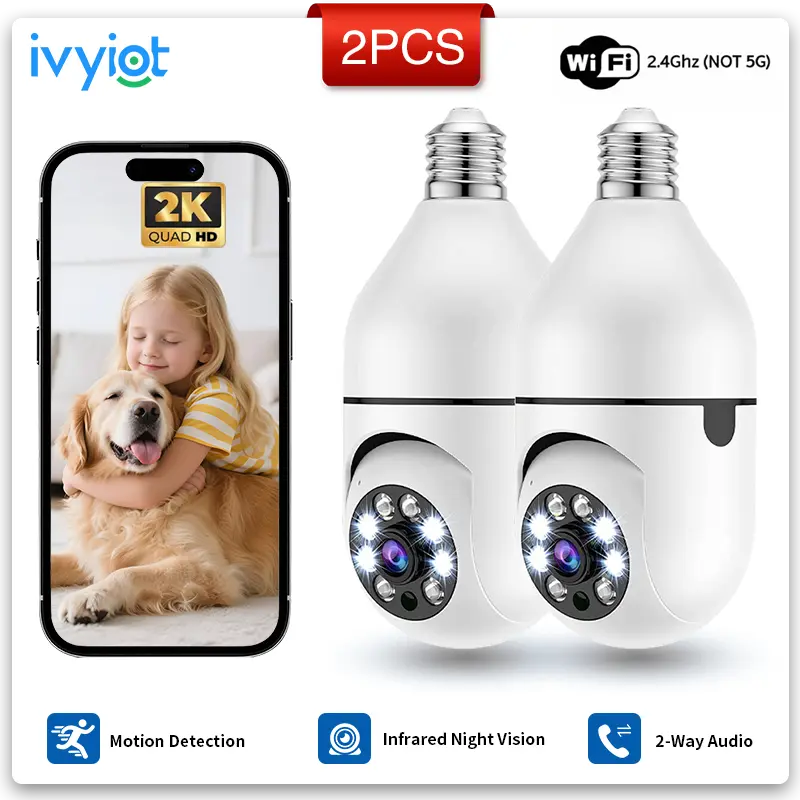 3MP Light Bulb Security Camera, E27 Socket, 2.4G WiFi Only, 360° PTZ, Human Detection & Auto Tracking, Color Night Vision, Two-Way Audio, Siren Alarm, Home Security Camera for Baby/Pet Monitor