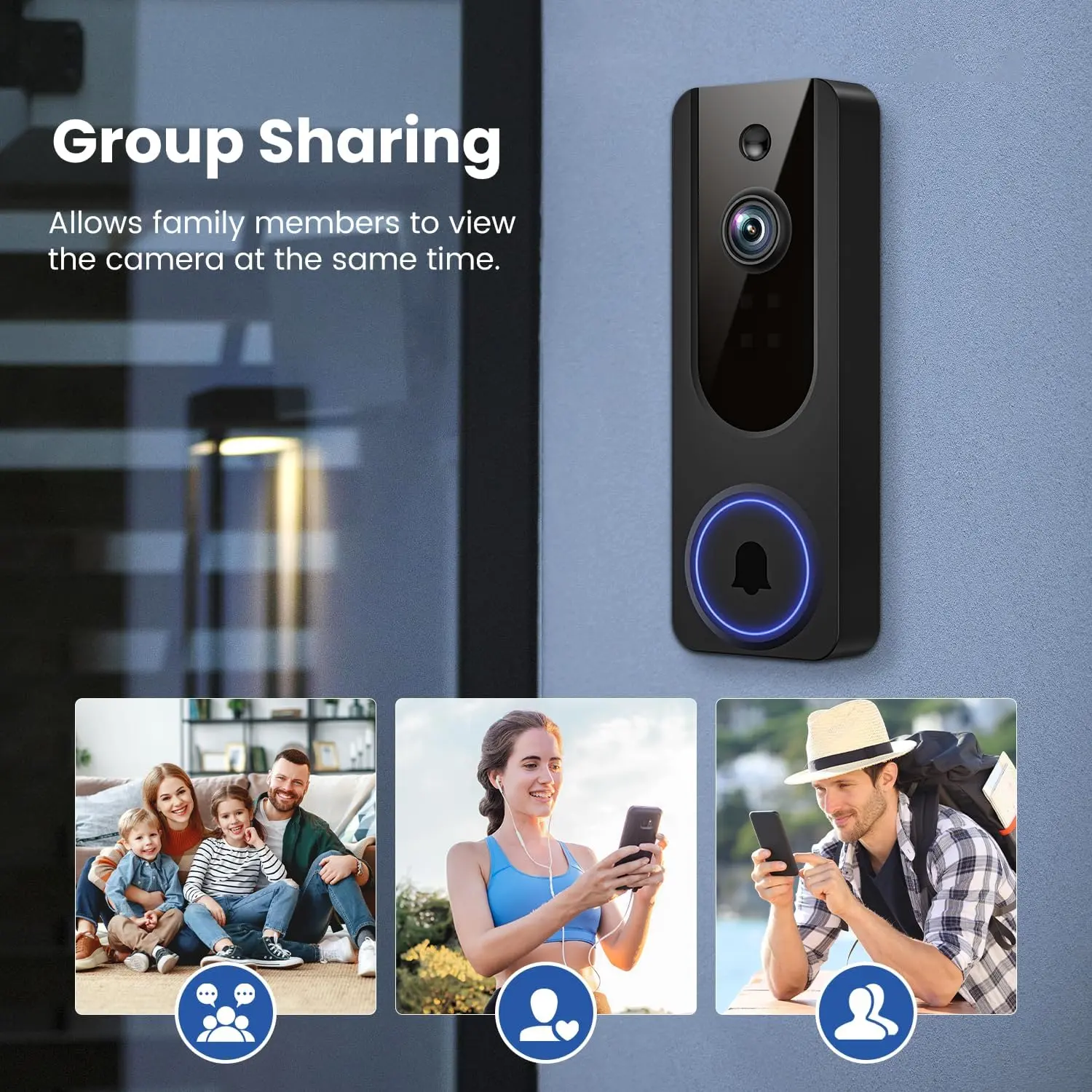 Equipped with night vision, this doorbell ensures 24/7 monitoring — even in complete darkness. The wireless battery-powered design makes installation quick and hassle-free, perfect for both indoor and outdoor use.