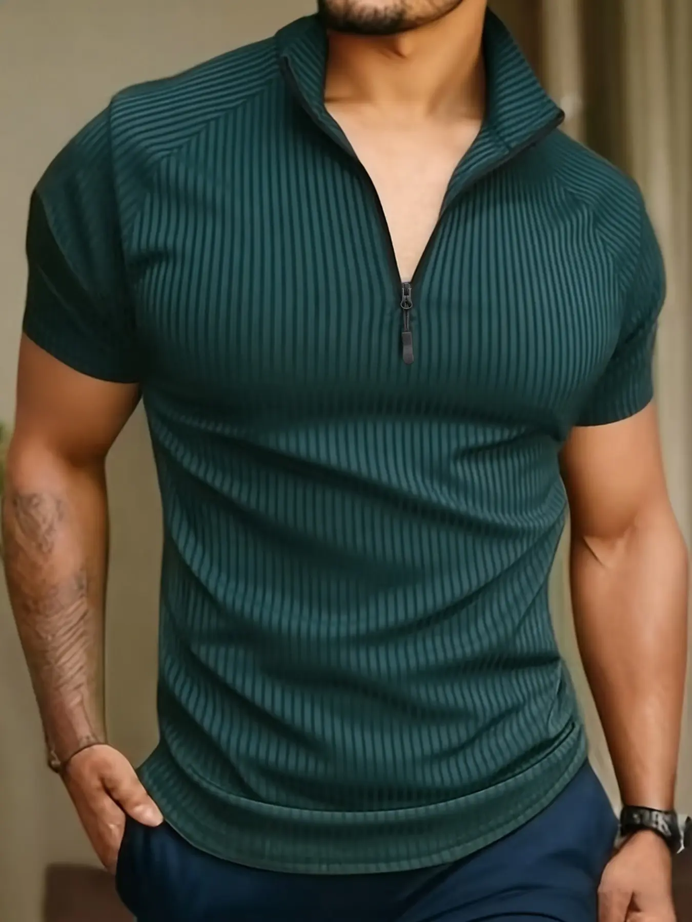 Men's Slim Fit Short Sleeve Quarter Zip Pullover, Quick-Dry Breathable Ribbed Sport T-Shirt, Ideal for Gym, Running, Casual Wear, All Seasons