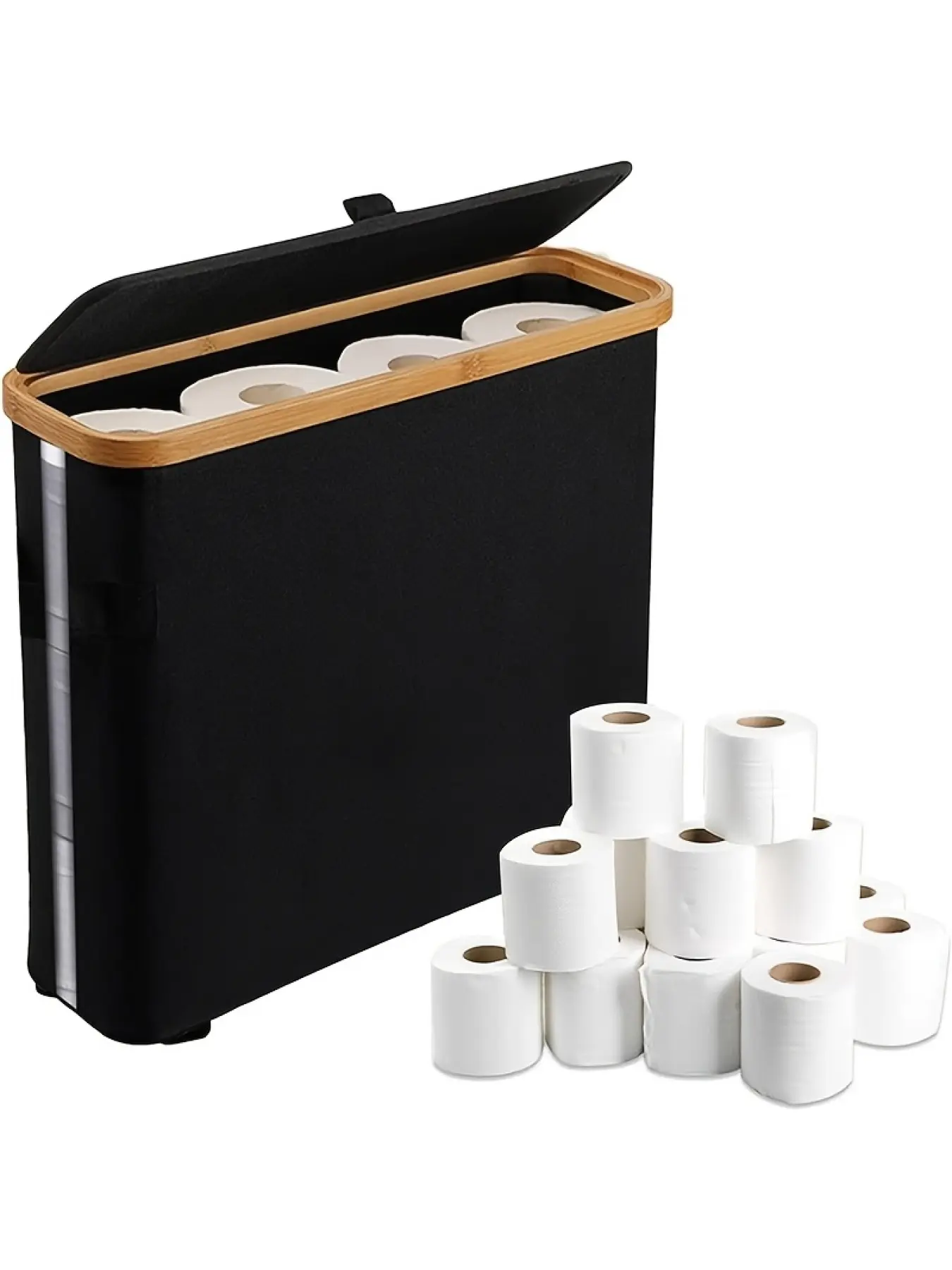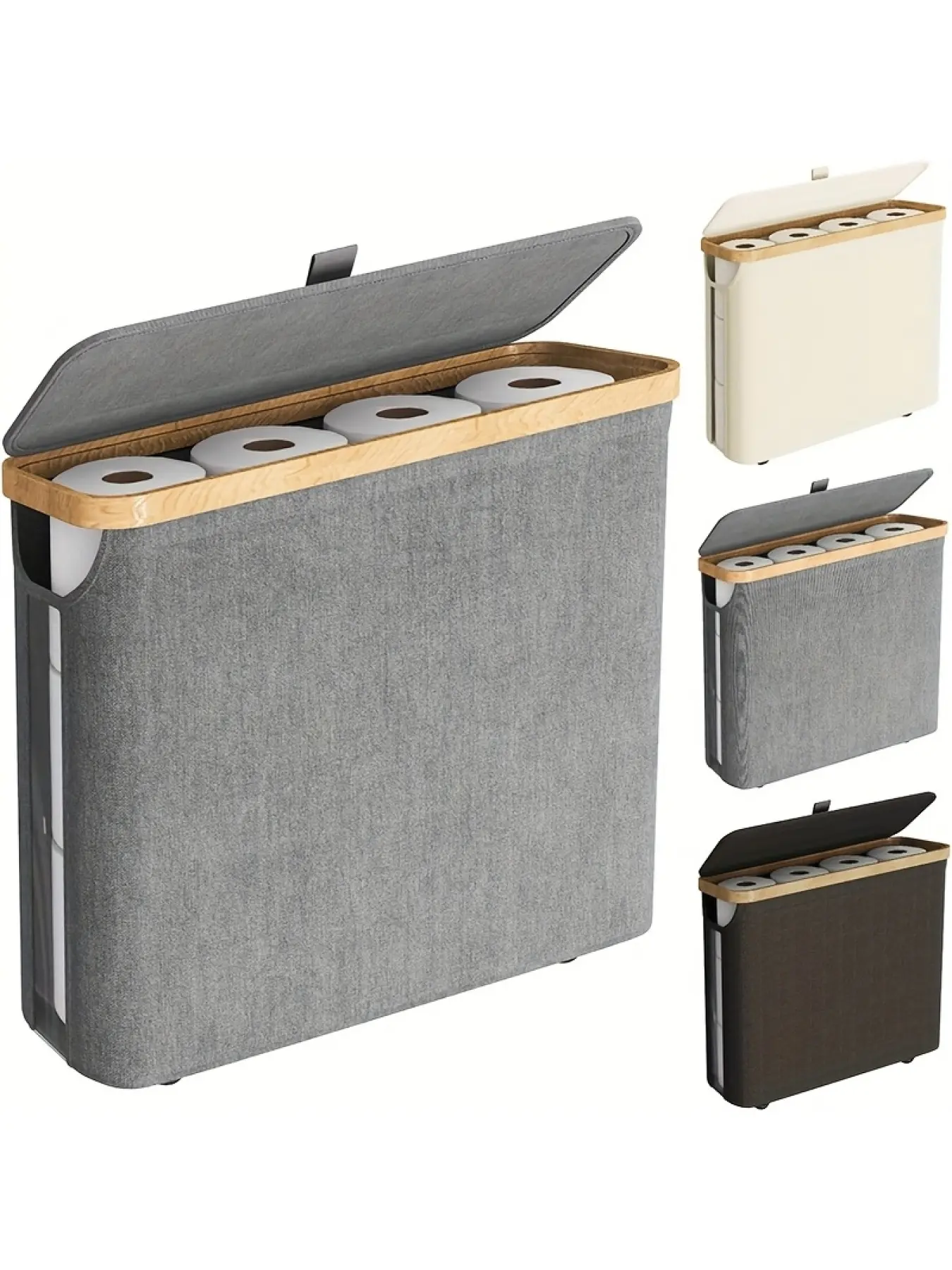 12 Rolls Bamboo Storage Rack with Lid - 7.93 Gallon Capacity, Modern Fabric Storage Basket, Multi-Functional Organizer with Handles, Durable Bamboo Bathroom Organizer and Storage Shelf Basket