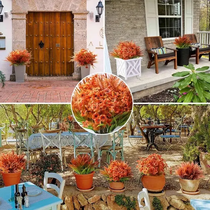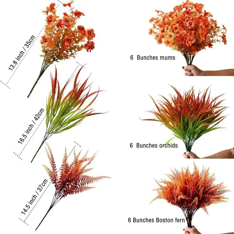 18pcs Artificial Pumpkin Flower Decorations, UV Resistant Faux Fall Flowers for Outdoor Use, Ideal for Pots Gardens Patios Homes