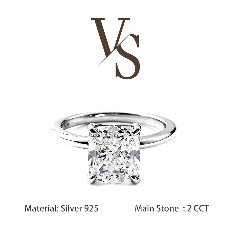 [Venus Jewelry] Synthetic Moissanite 2 CCT Radiant Cut Solitare Design VVS 1 D Color Solid Silver 925 Solitare Ring