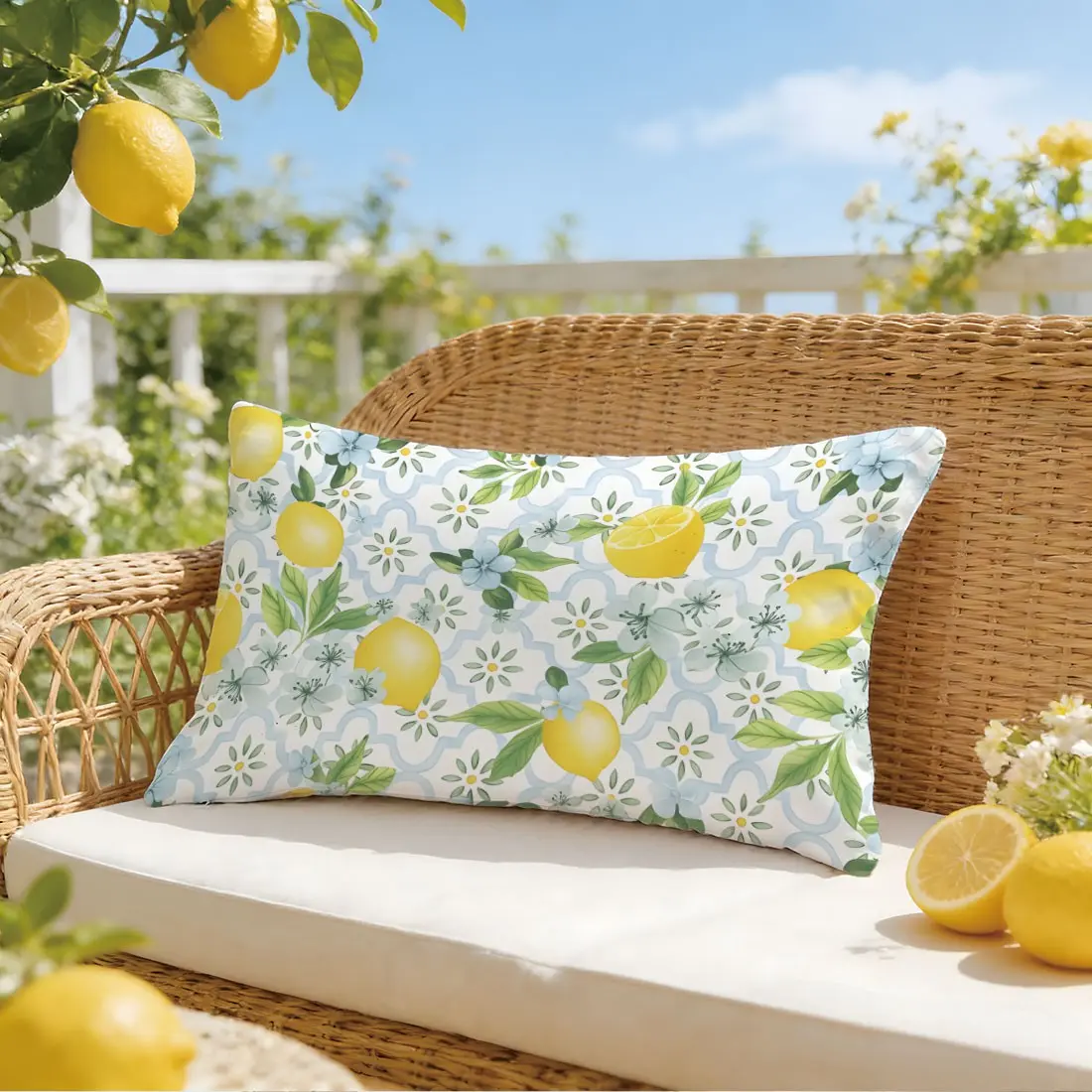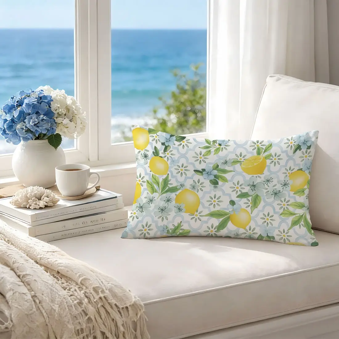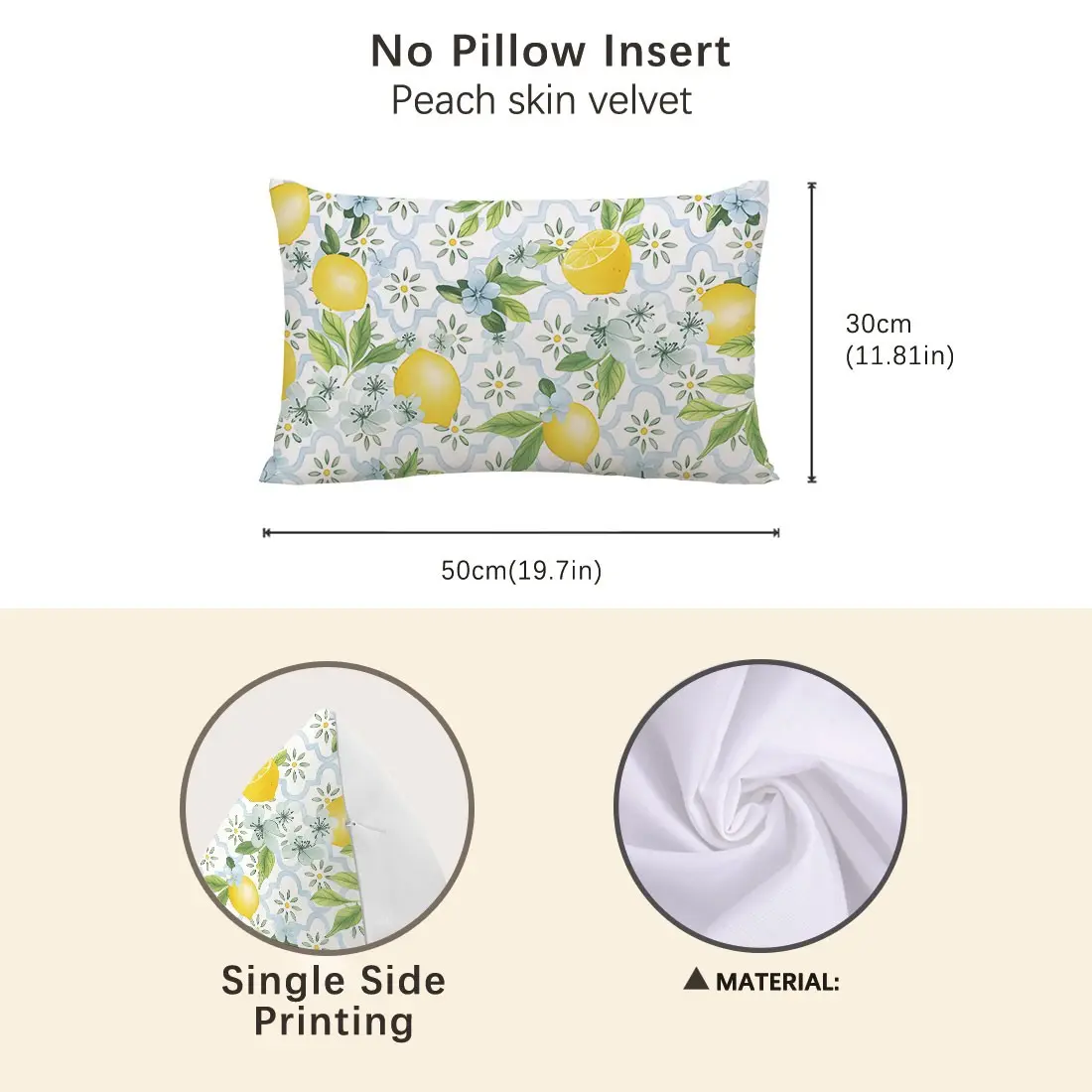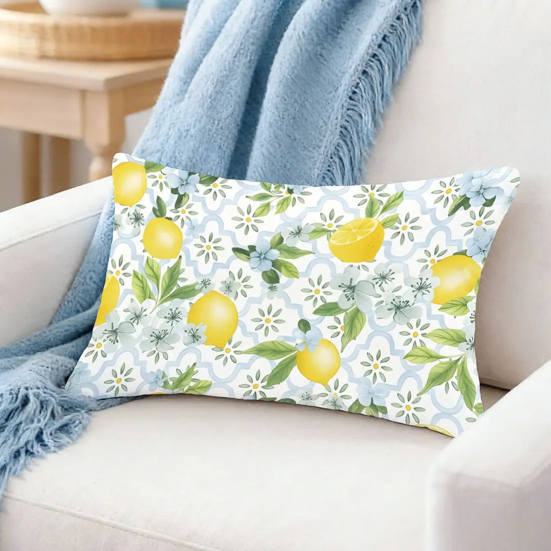 Lemon Blue Watercolor Porcelain Pattern Pillow Cover, Single Side Print, Rectangular Home Decor, Living Room Bedroom, No Insert Included