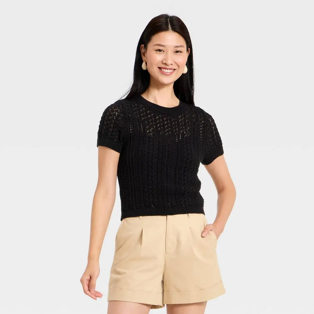 Women's Short Sleeve Crochet Sweater Top - A New Day