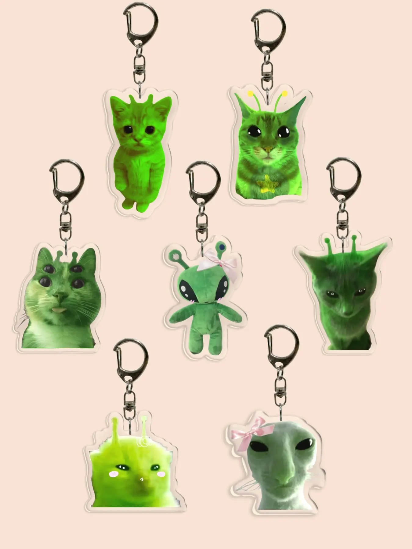 Funny Alien Acrylic Keychain, Face, Alien Cat, Sad Cat Pendant, Backpack Charm, Phone Accessory, Wallet Clip, Friend Gift