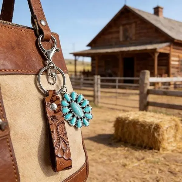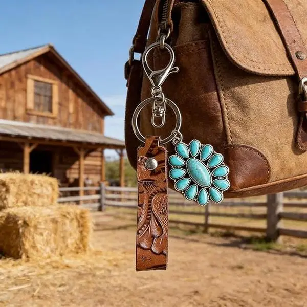 BloomWish S Western Keychain Turquoise Bag Charm Wrangler Keychain Purse Charms for Handbags Boho Jewelry Gifts for Women Trendy