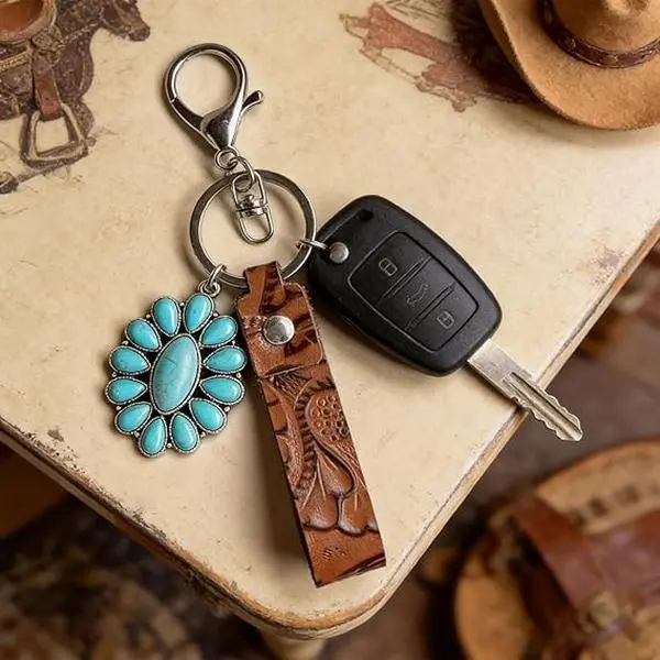 Classic Western Design This western keychain features iconic western inspired elements adding a rustic and vintage style to everyday accessories