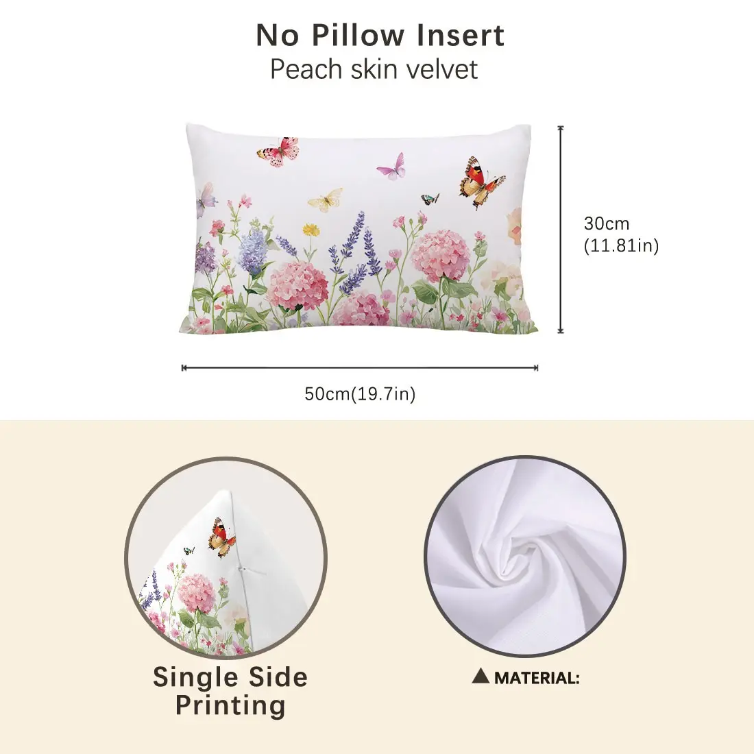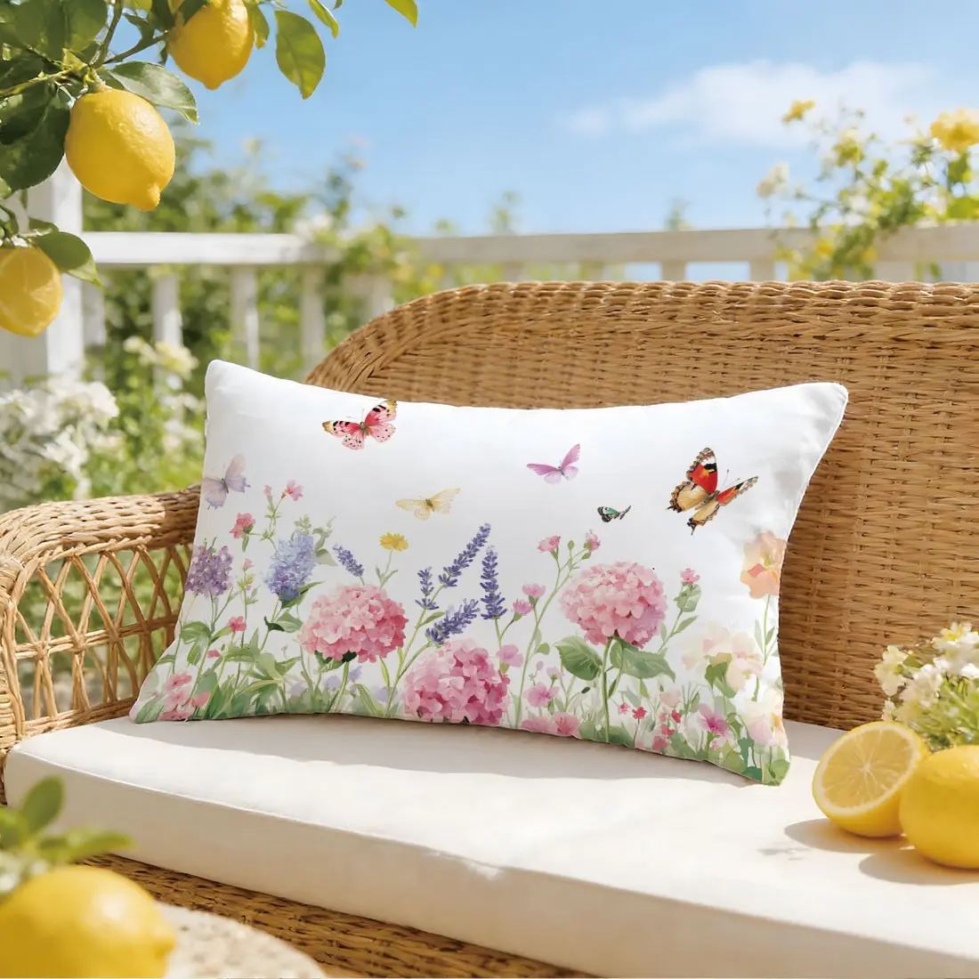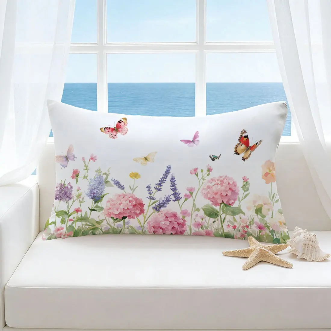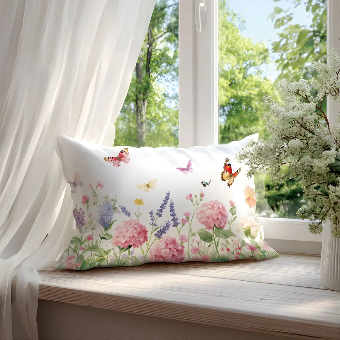 Butterfly and Floral Pattern Pillow Cover, Single-Sided Print, Rectangular Home Decor, Suitable for Living Room and Bedroom, No Insert Included