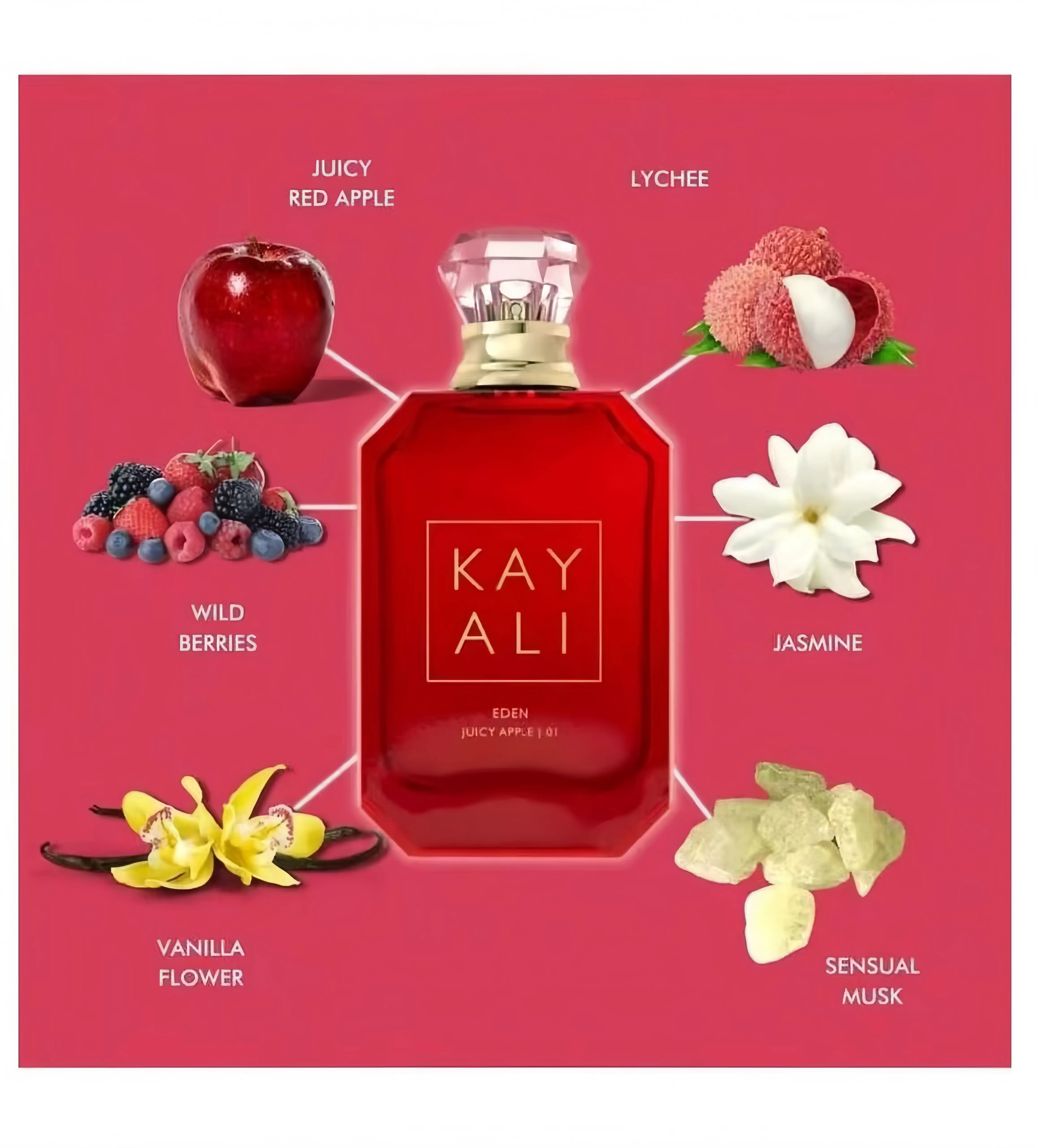 Discover the Kayali Eden Juicy Applel 01 Perfume, a 100ml bottle of fresh, juicy apple and wild berries floral blend. This perfume is perfect for fall campus days, coffee meetups, and casual day trips. Its unique scent captures the essence of nature, making it a delightful choice for any occasion.