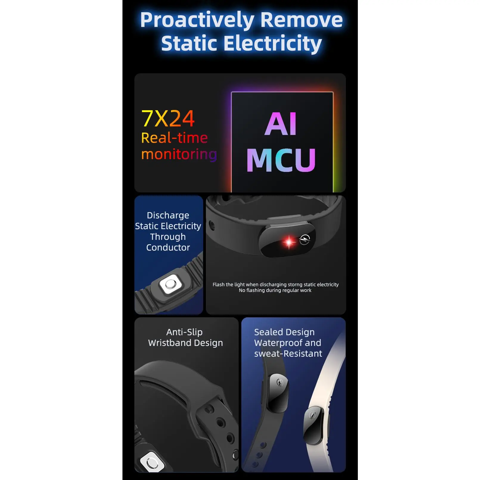 Hot Sales M12-SE Anti-static Silicone Bracelet Men Women Fashion Waterproof Adjustable Winter Human Body Static Eliminator