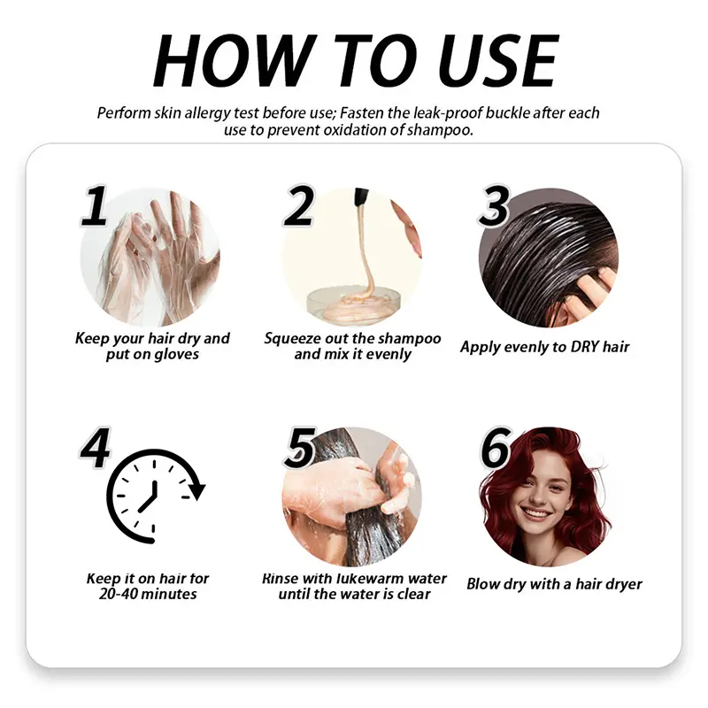 NO MIX, LESS MESSY---Anyone who's applied hair color knows that dripping is an annoying part. Our hair dye don’t need to mix in advance, just PRESS, RUB, APPLY and RINSE! No more mess and it's a breeze to dye your hair at home.