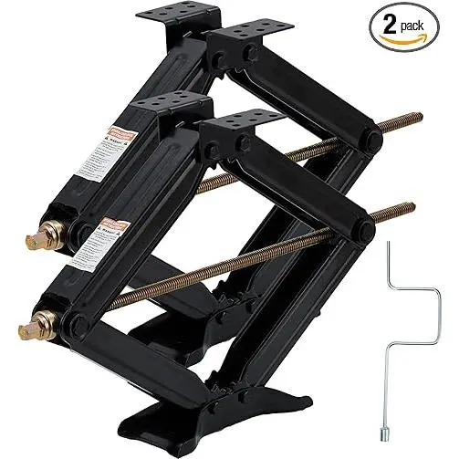 ·Heavy Duty RV Scissor Jack:The RV jacks made of heavy-duty steel with electrophoresis treatment, which is durable and strong,prefect for stabilize & level RVs.
