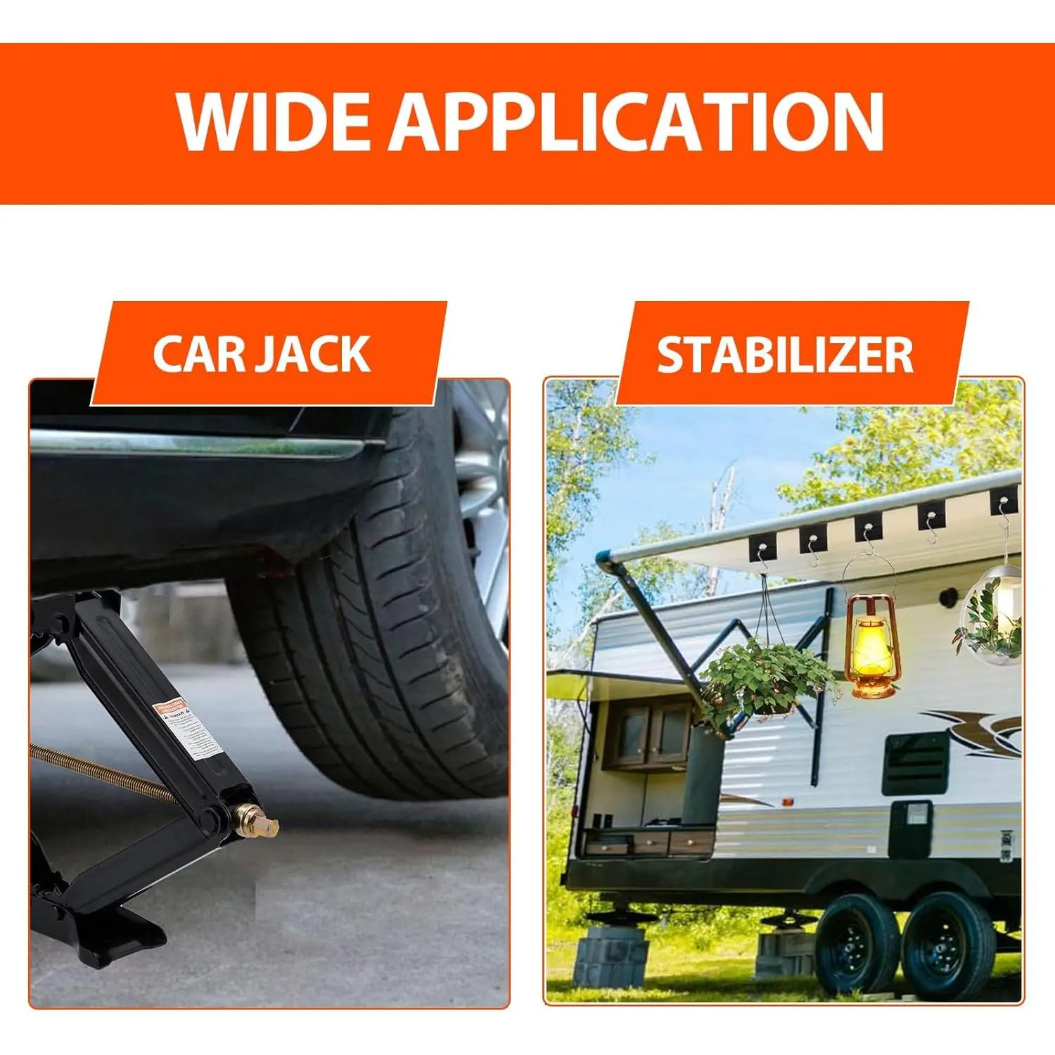 ·Multiple Scenes:RV leveling scissor jack equipped with a large footplate, it prevents sinking and tilting while evenly distributing the load.Perfect for stabilizing RV/trailers/camper when camping or keep stable and help to keep stable and quiet when having a rest.