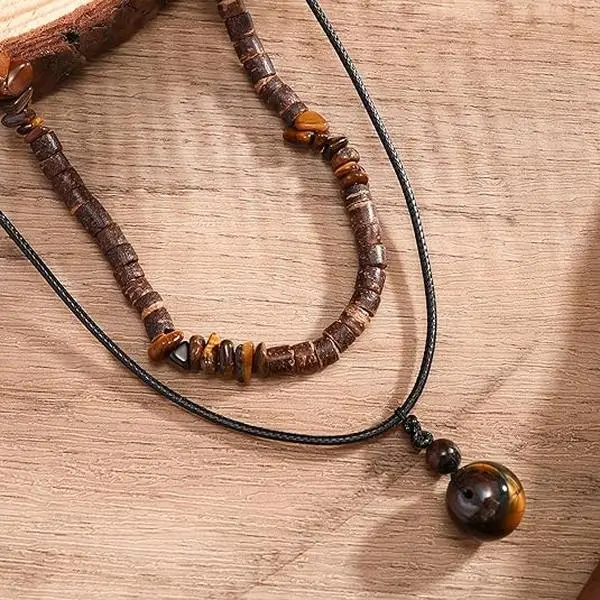 Veliora Gift B Puka Shell Necklace for Men Tiger Eye Hawaiian Layered Beaded Shungite Black Onyx Necklaces Summer Charm Necklace Beach Vacation Essentials