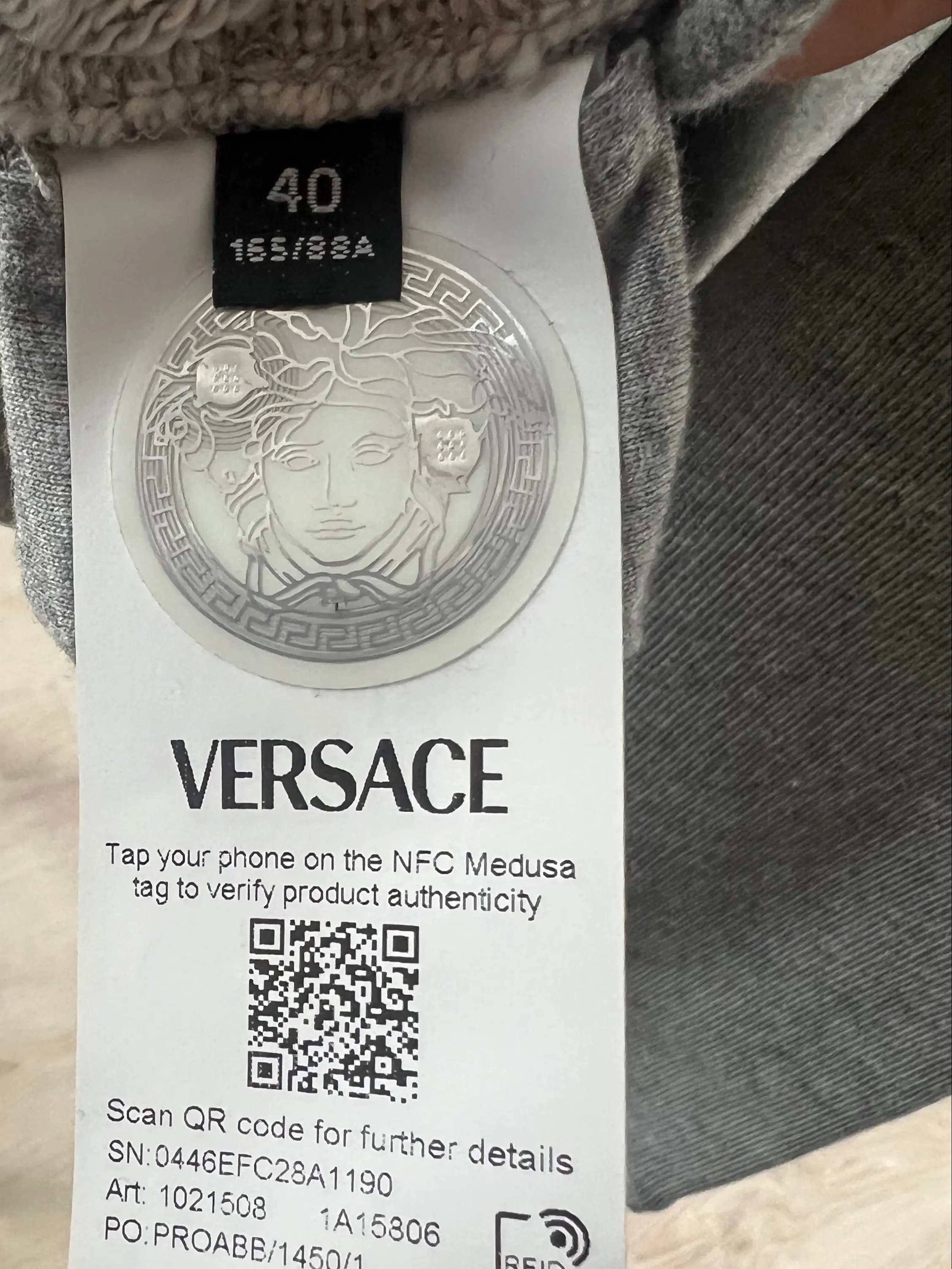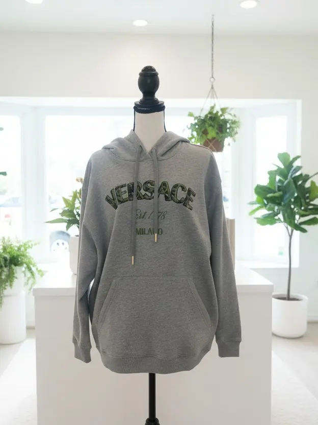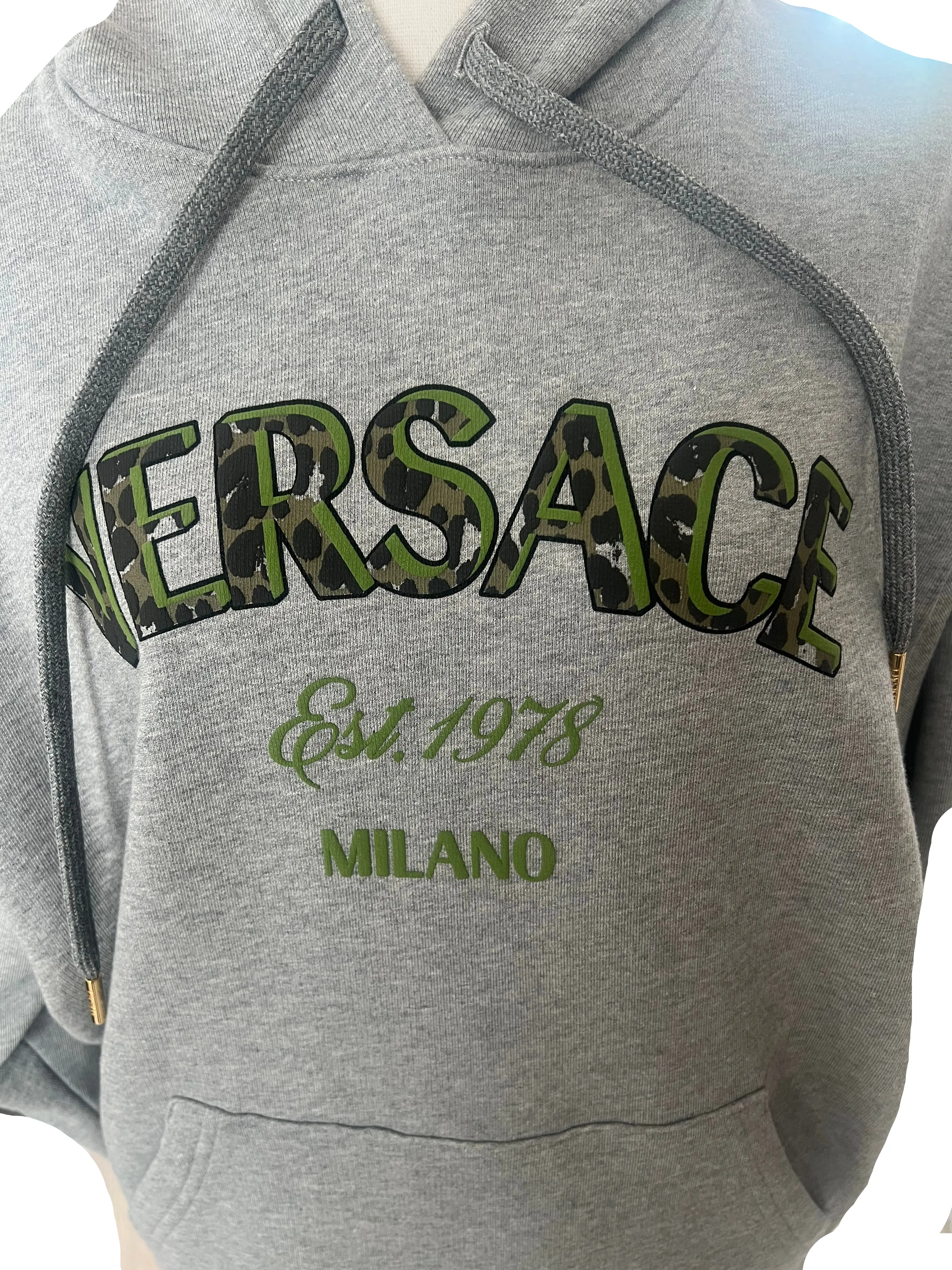 Pre-Owned Versace Gray Hoodie Green and Leopard Logo - New