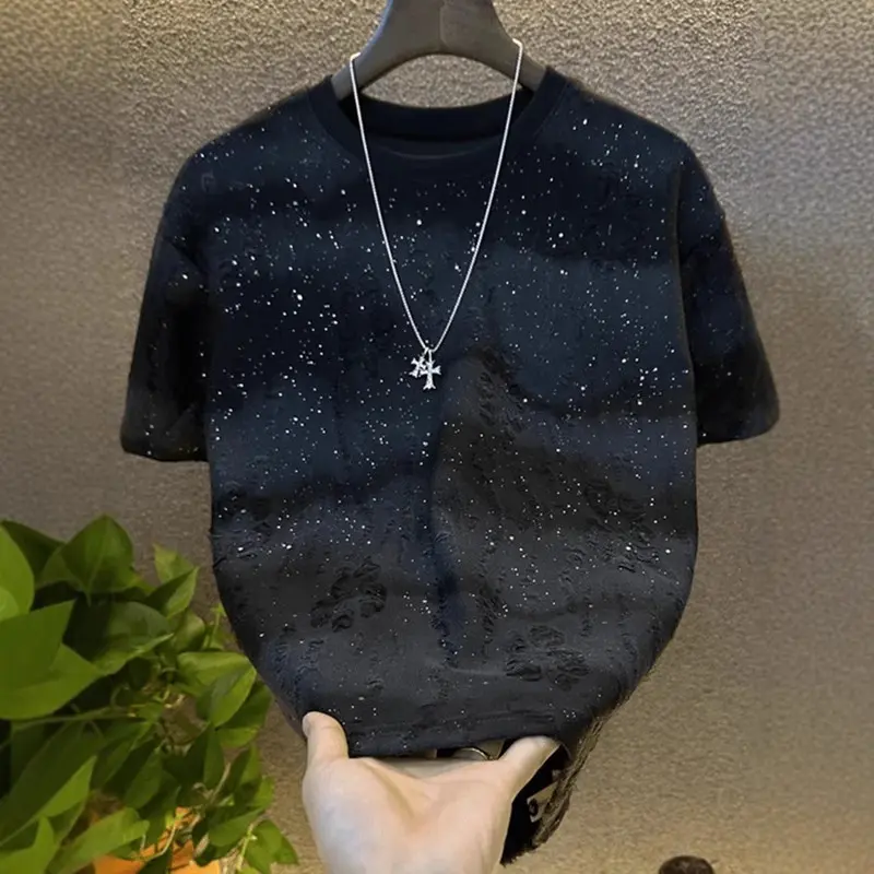 Men's Heavyweight Cotton Tee, Summer Loose Fit Streetwear T-Shirt, Premium Vintage Printed Short Sleeve Top