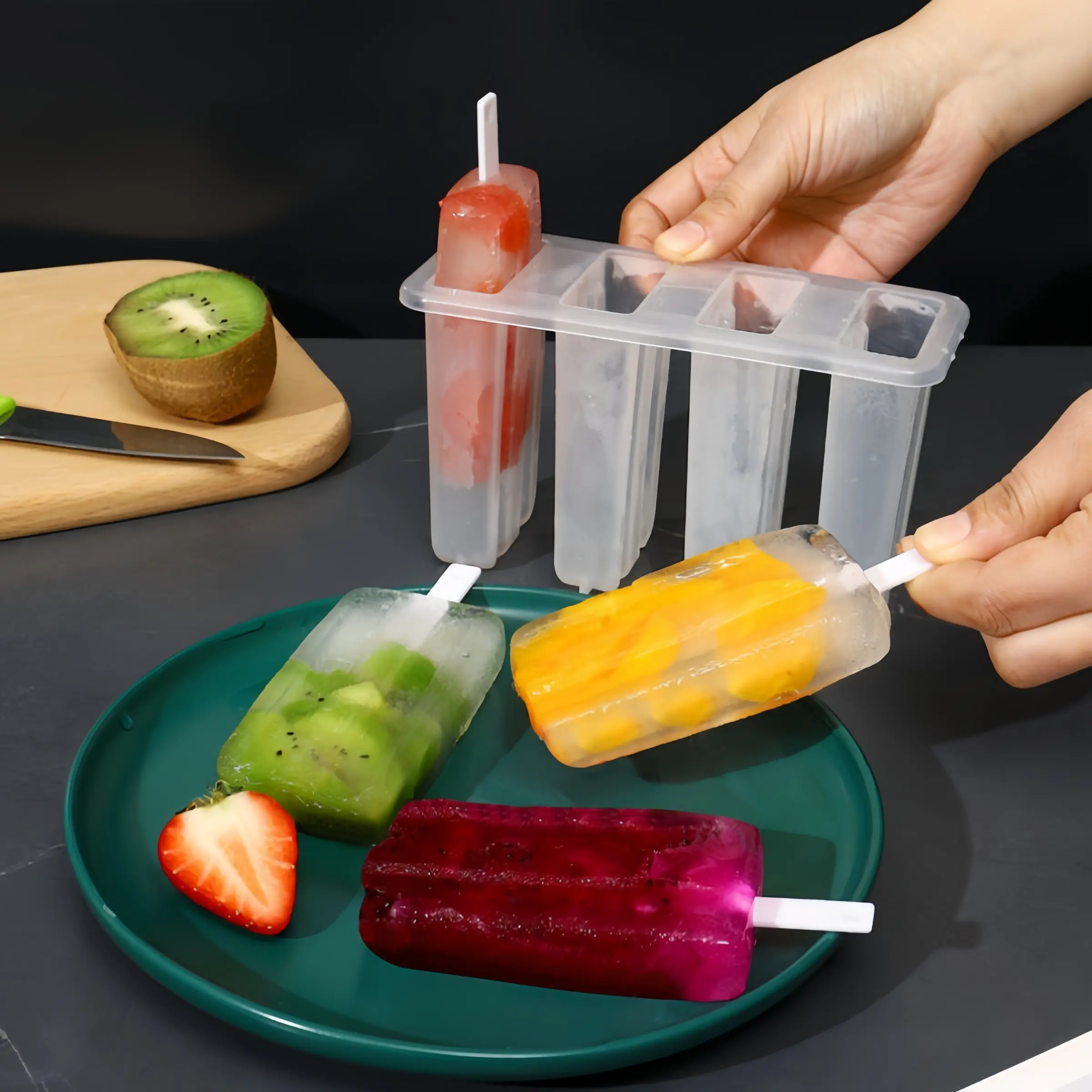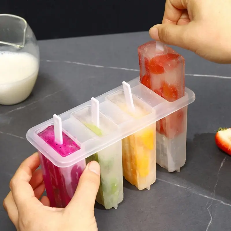 【4-Piece Set】: Includes four molds, perfect for making multiple ice lollies simultaneously.