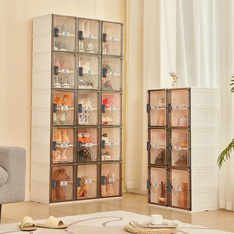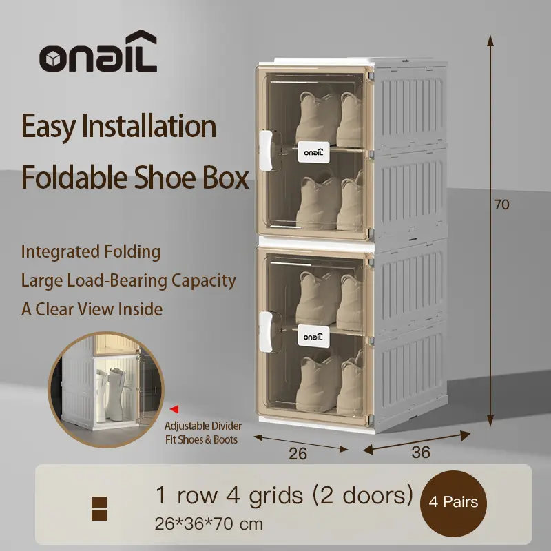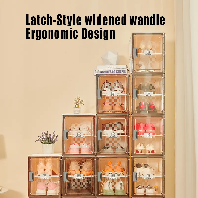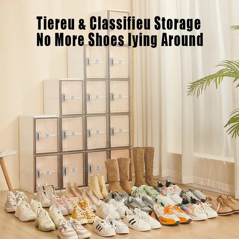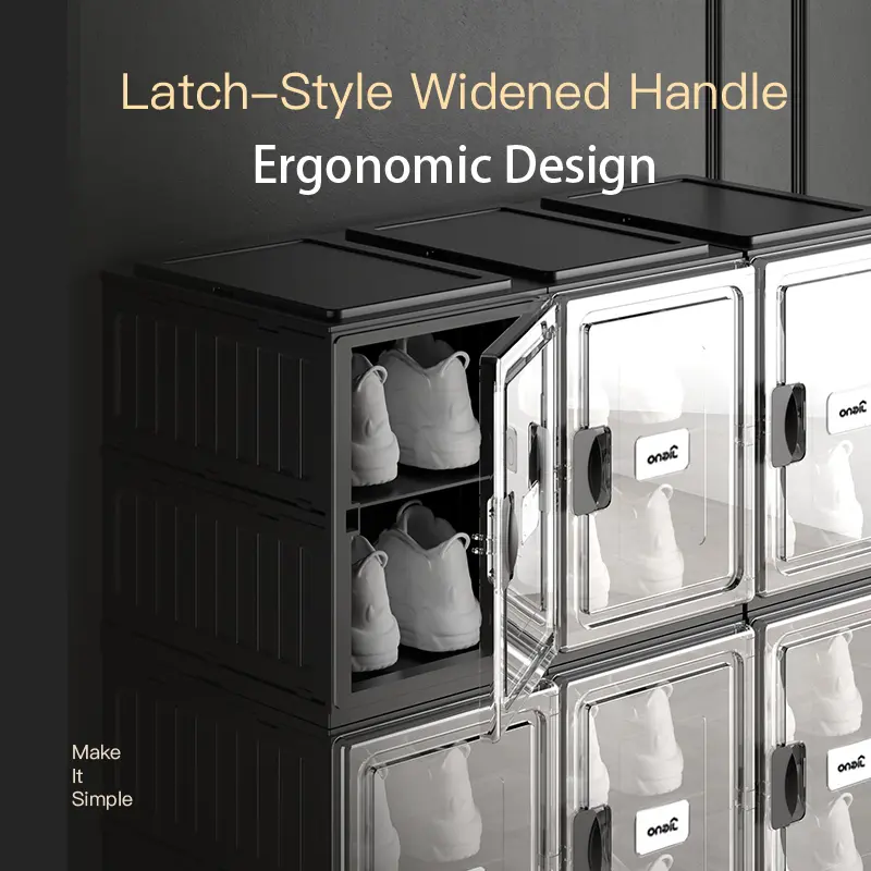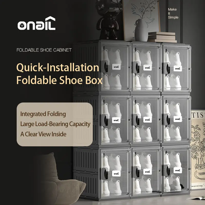 ONAIL Shoe Organizer Storage Box, Portable Folding Shoe Rack for Closet with Magnetic Clear Door, Large Sneaker Cabinet Bins Sturdy Easy Assembly-B