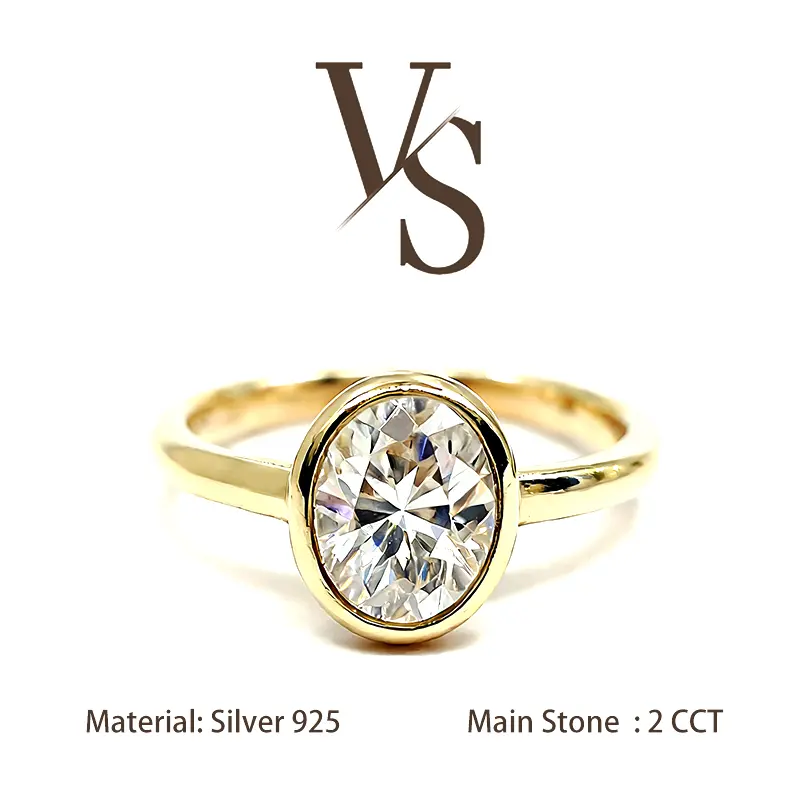 [Venus Jewelry] Synthetic Moissanite 2 CCT Oval Shape Bezel Design VVS 1 D Color Solid Silver 925 Solitare Ring