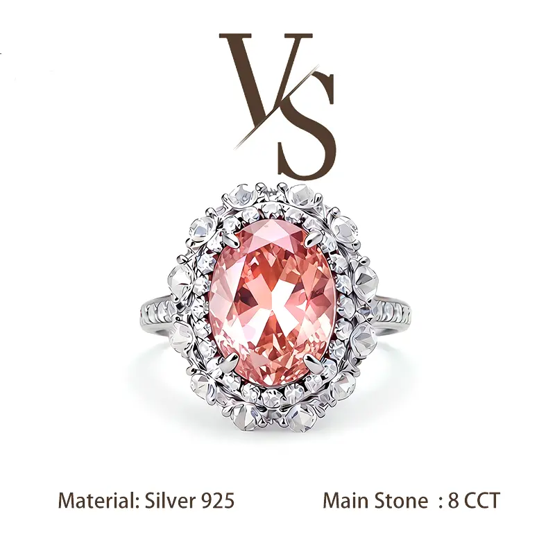 [Venus Jewelry] Lab Created Gemstone 8 CCT Oval Shape Double Luxury Halo Design Solid Silver 925 Solitare Ring
