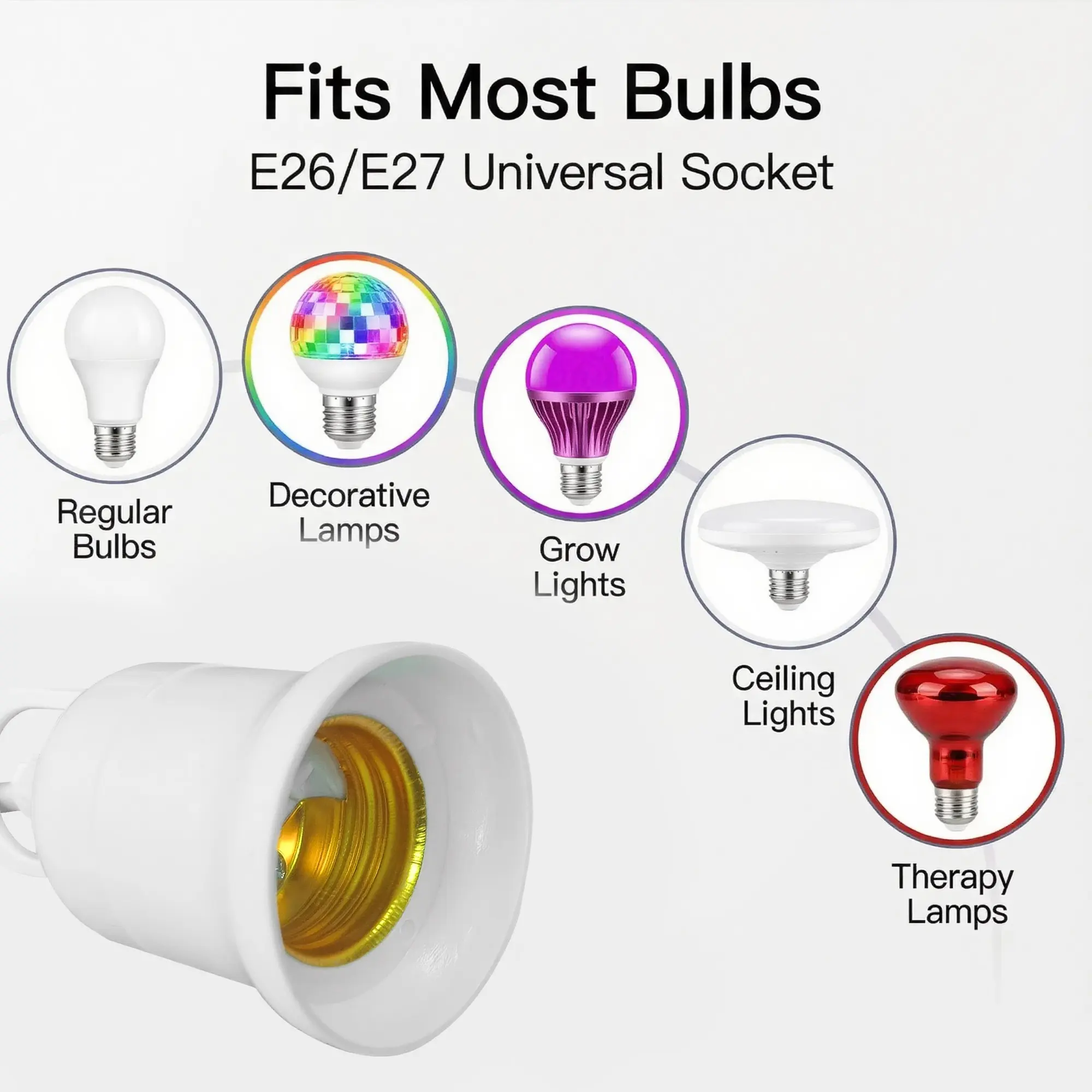 【E26/E27 Screw】: Compatible with both E26 and E27 screw bases, offering versatility for various lamp types.