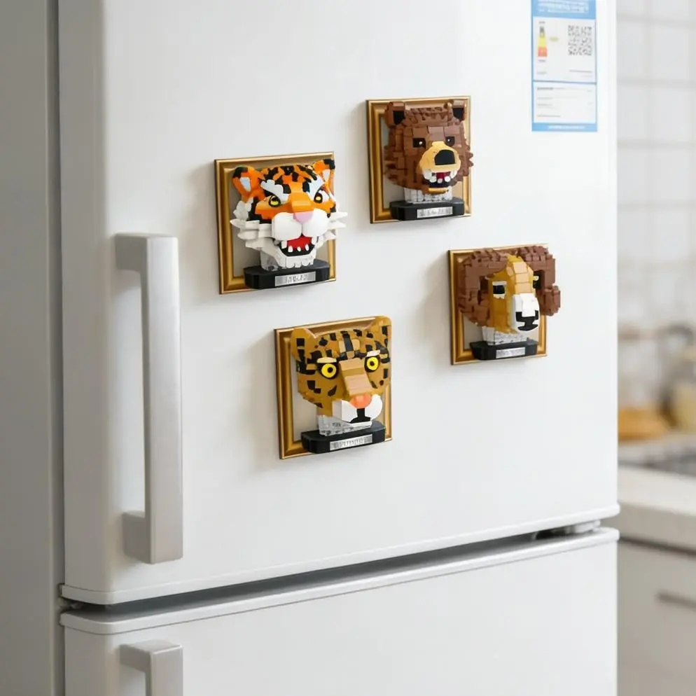8-Pack DIY Animal Head Block Refrigerator Magnets, New Plastic Suction Cups, Home Creative Decoration, Perfect Holiday Gift