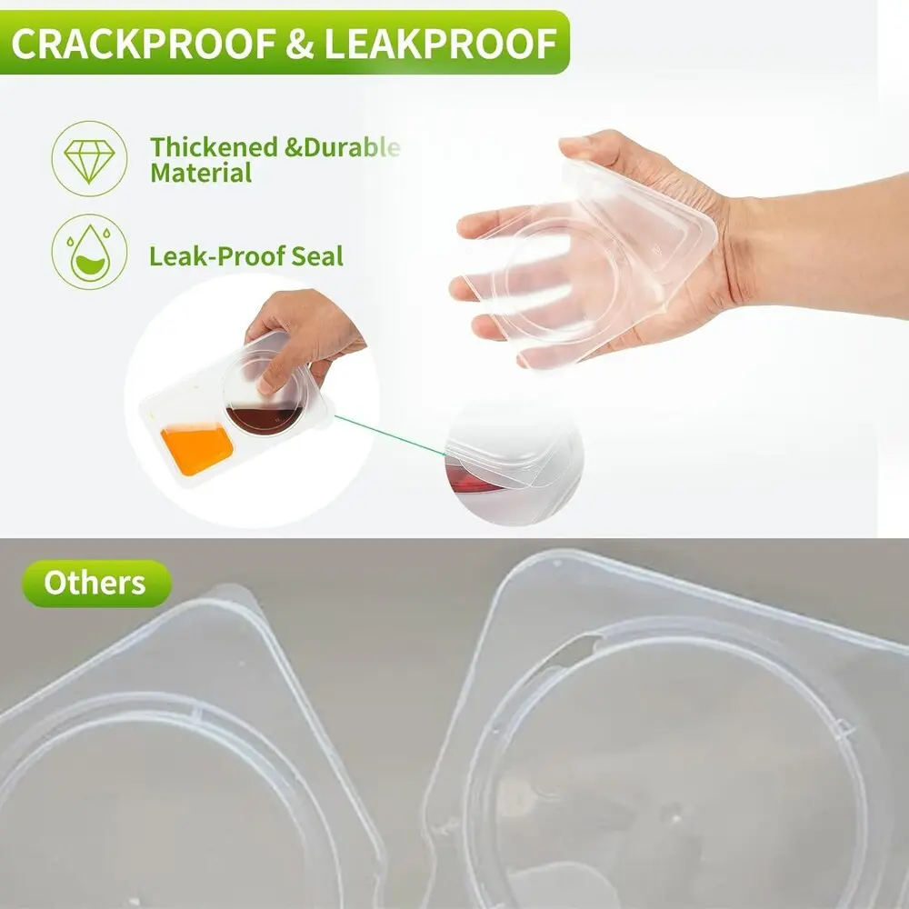 40 Pack Reusable Double Compartment Dipping Sauce Containers with Lids Plastic Boxes for Condiments Snacks Meals Kitchen Party Camping Picnic Travel Takeaway Safe Stackable