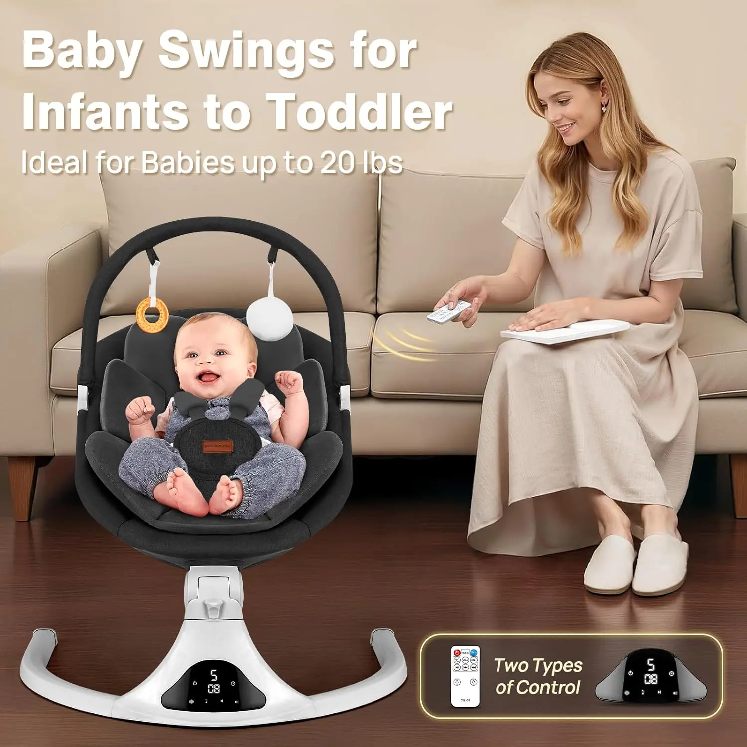 Baby Swing, Electric Infant Swing with Remote Control, 5 Speed Adjustable, Machine Washable Seat, 5 Point Safety Harness, Bluetooth Music, Portable Swing for Babies (Black)