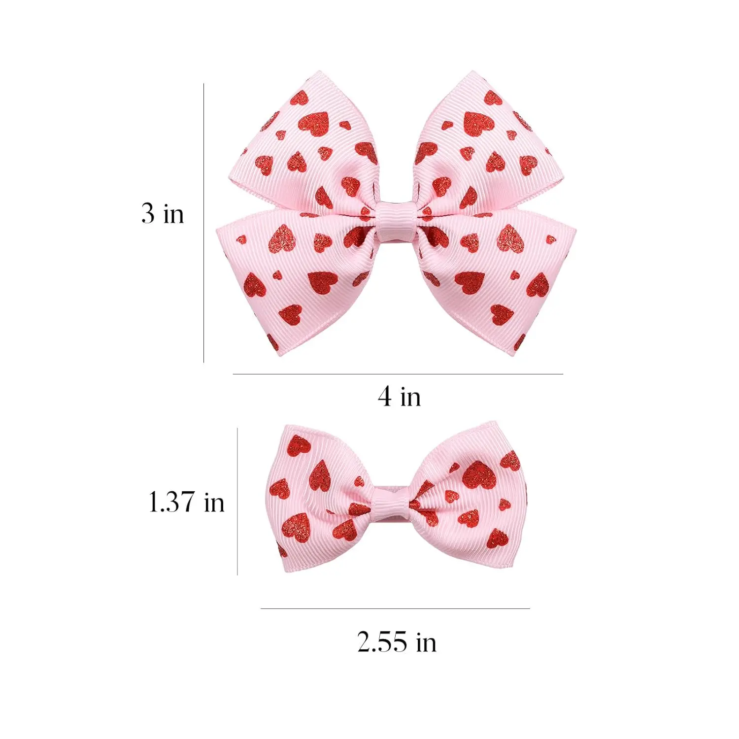Valentines Pink Hair Bows Gift for Girls Women 4Pcs Cute Handmade Glittery Red Love Heart Ribbon Alligator Clips, Her Wedding Birthday Party Dress Decoration Accessories