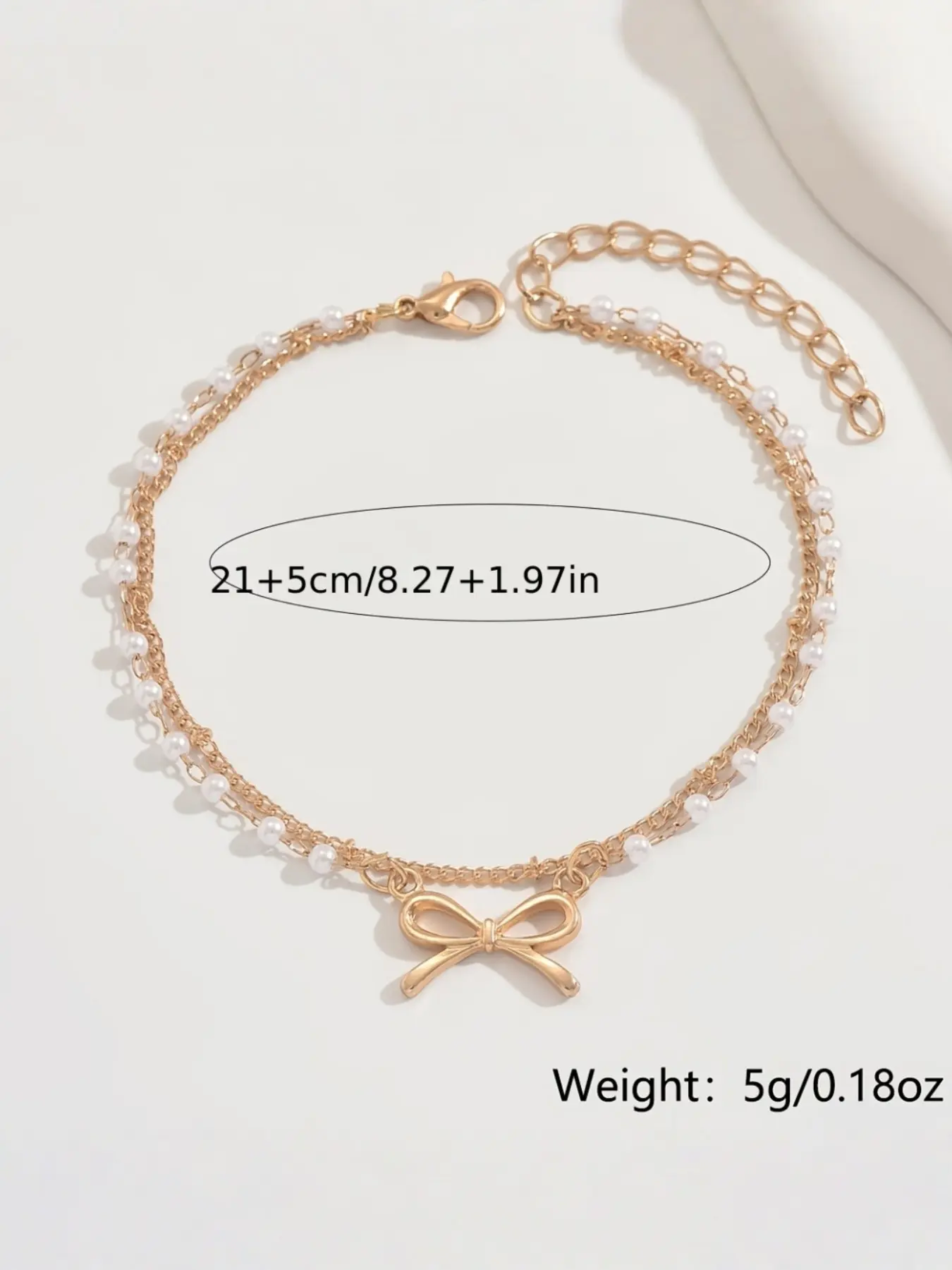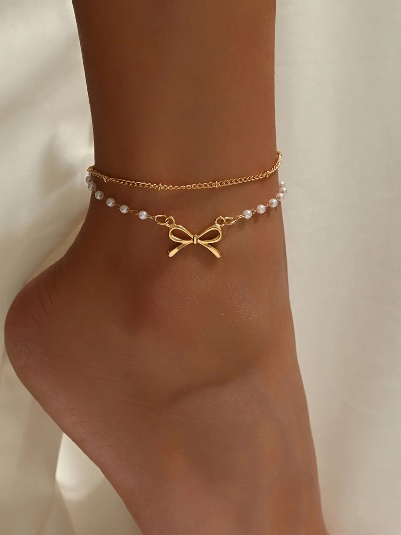Women's Fashion Anklet, Vintage Summer Vacation Style, Geometric Design, Elegant Faux Pearl Chain with Bow Pendant, Perfect for Beach Parties