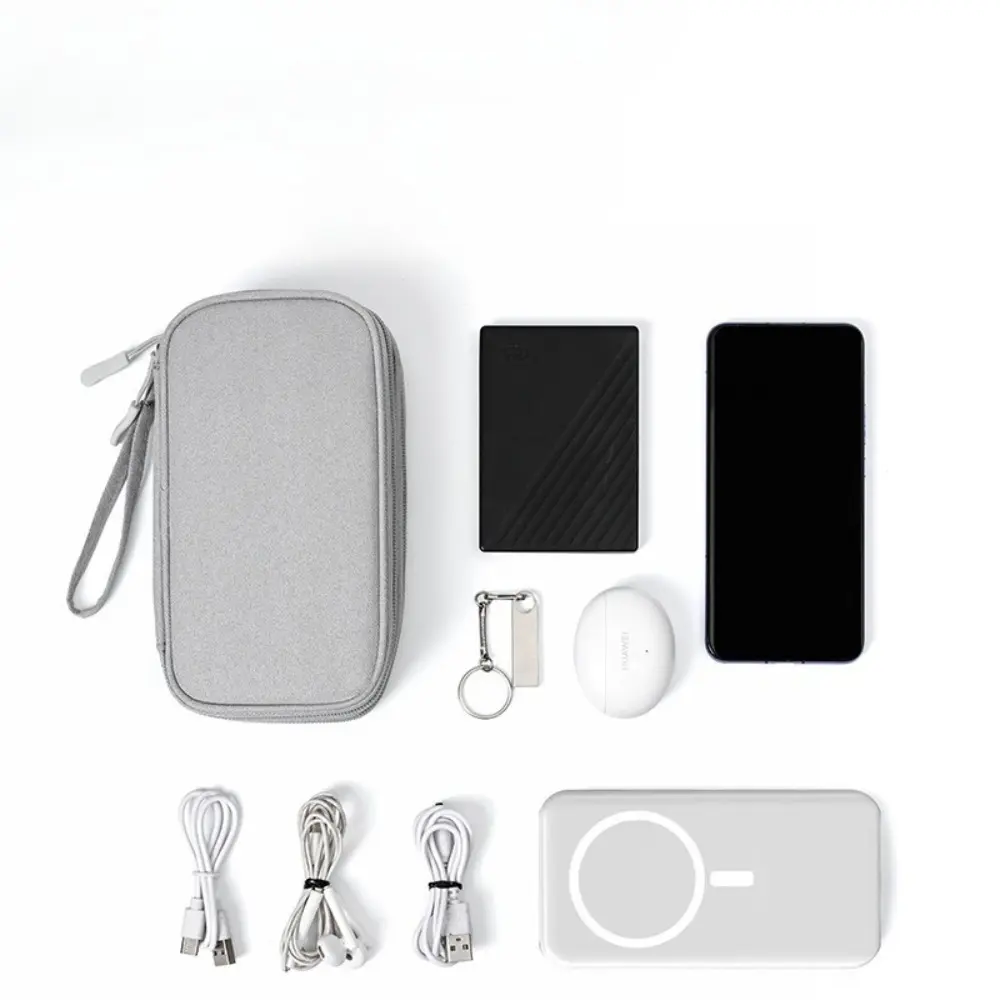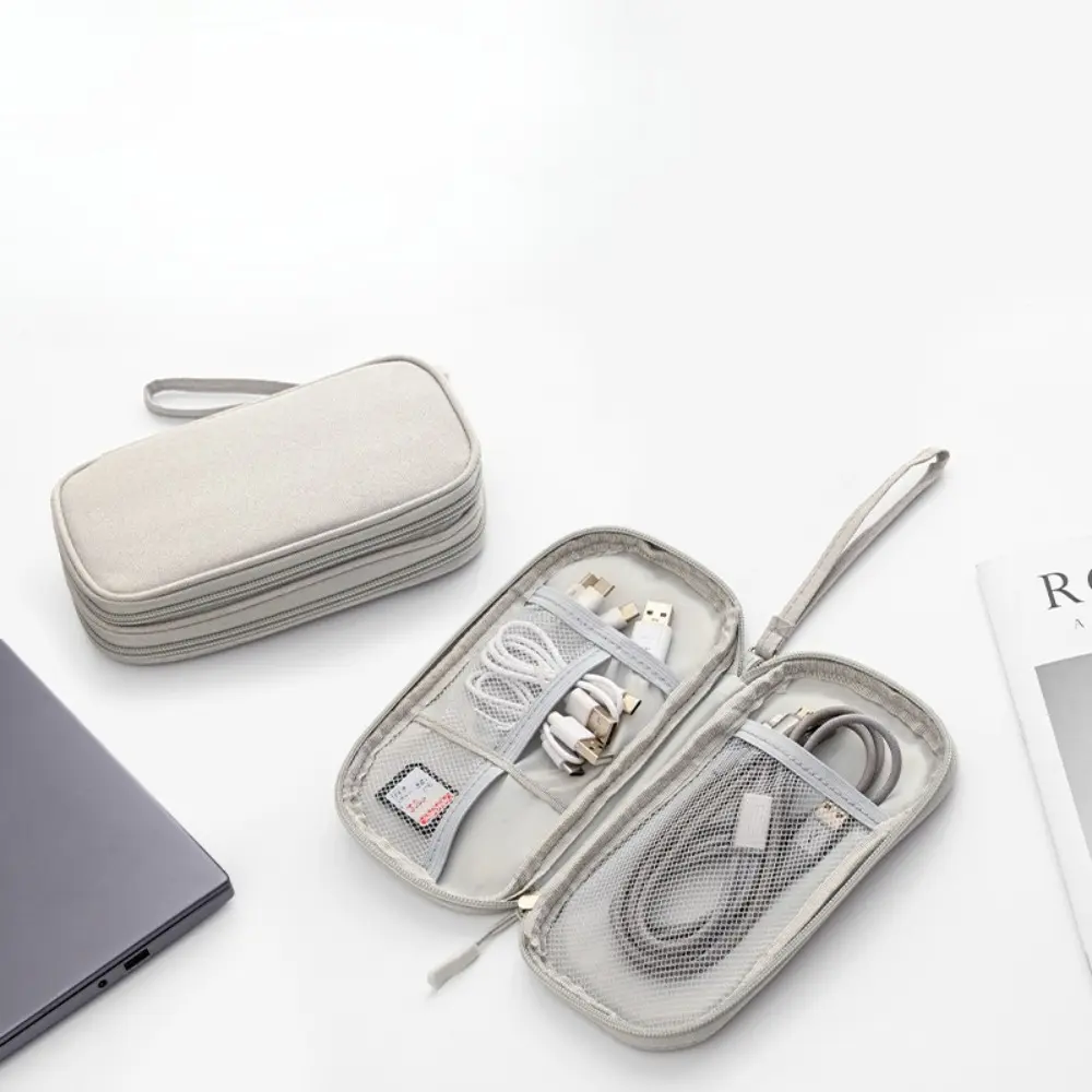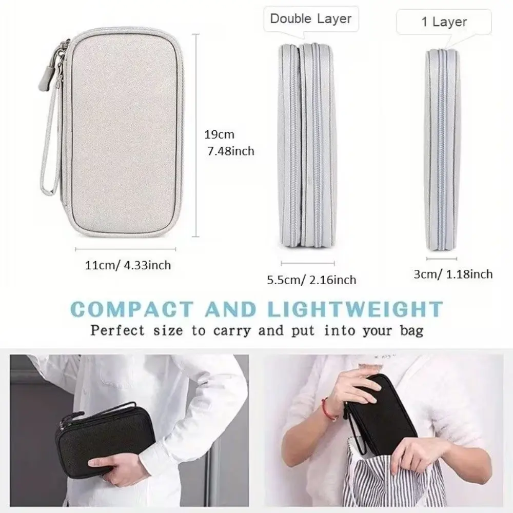 Portable data cable storage bag, double-layer mobile phone charger storage bag, multi-layer grid digital accessory storage bag, compact and convenient travel data cable storage bag