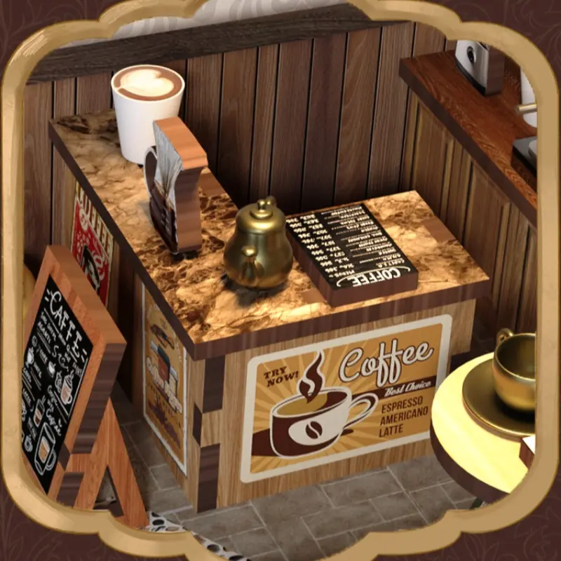 DIY Miniature House Model Kit, Handmade Coffee Shop Building Set, 3D Puzzle Toy for Ages 14+, Home Decor & Creative Gift Idea