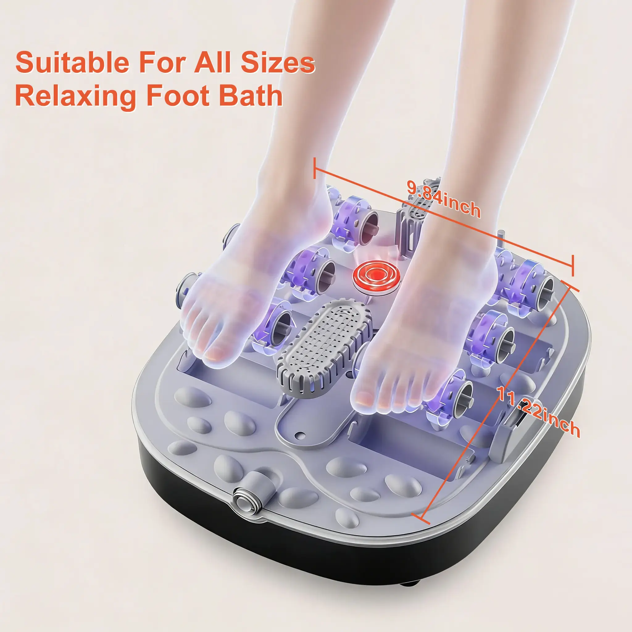 The bottom of the foot bath is equipped with 6 groups of non-motorized massage rollers and massage bumps. It effectively stimulates the meridians, relaxing the entire foot.Treat your feet after a long day of work with this Foot Spa. The foot bath massage work to revive your feet by gently massaging and soothing your tired.