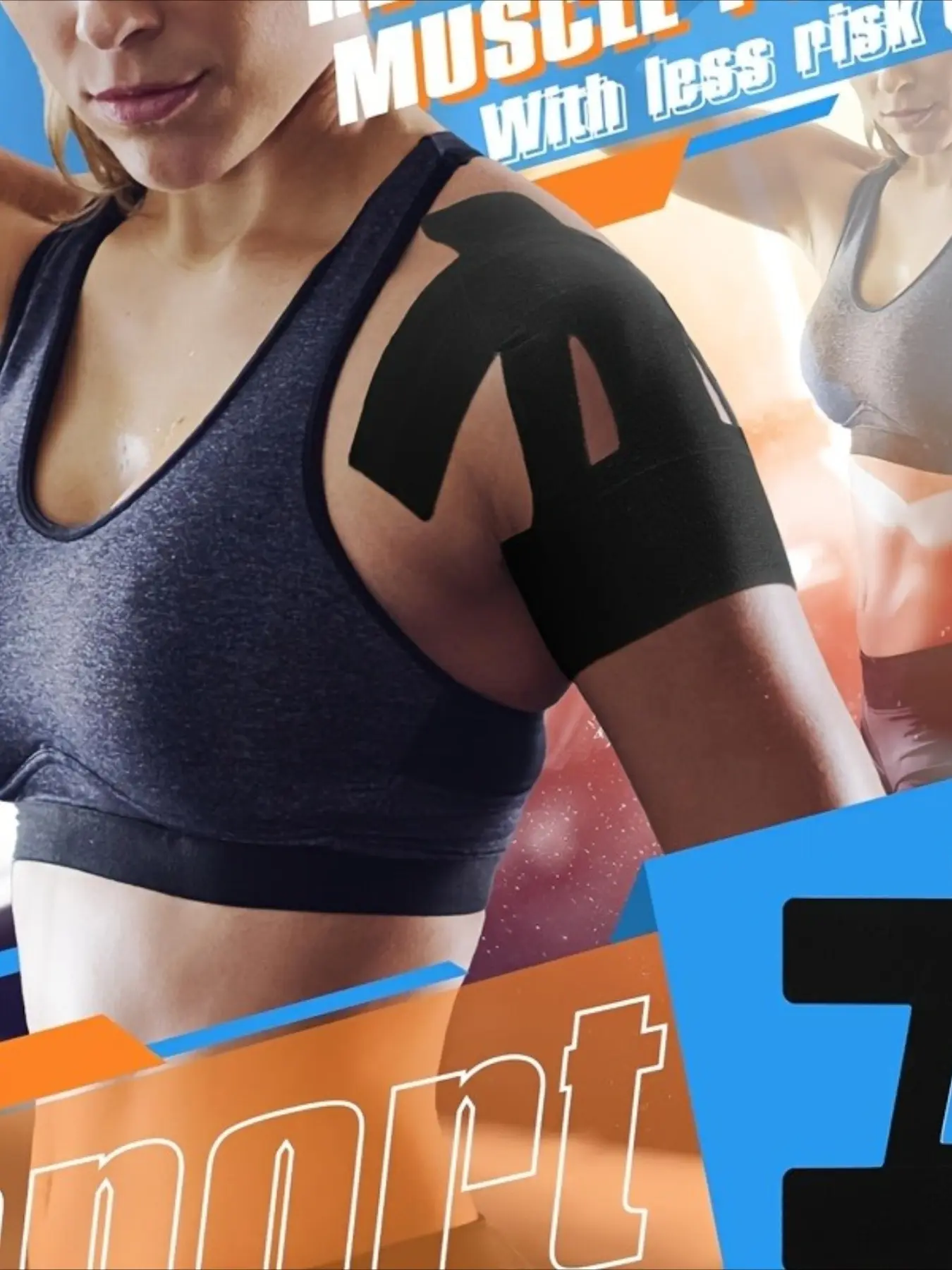 Shoulder exercise patch, pre-cut shoulder training patch, elastic bandage, prevent muscle strain, wound care, support muscles, enhance stability, breathable, black, 6-piece set