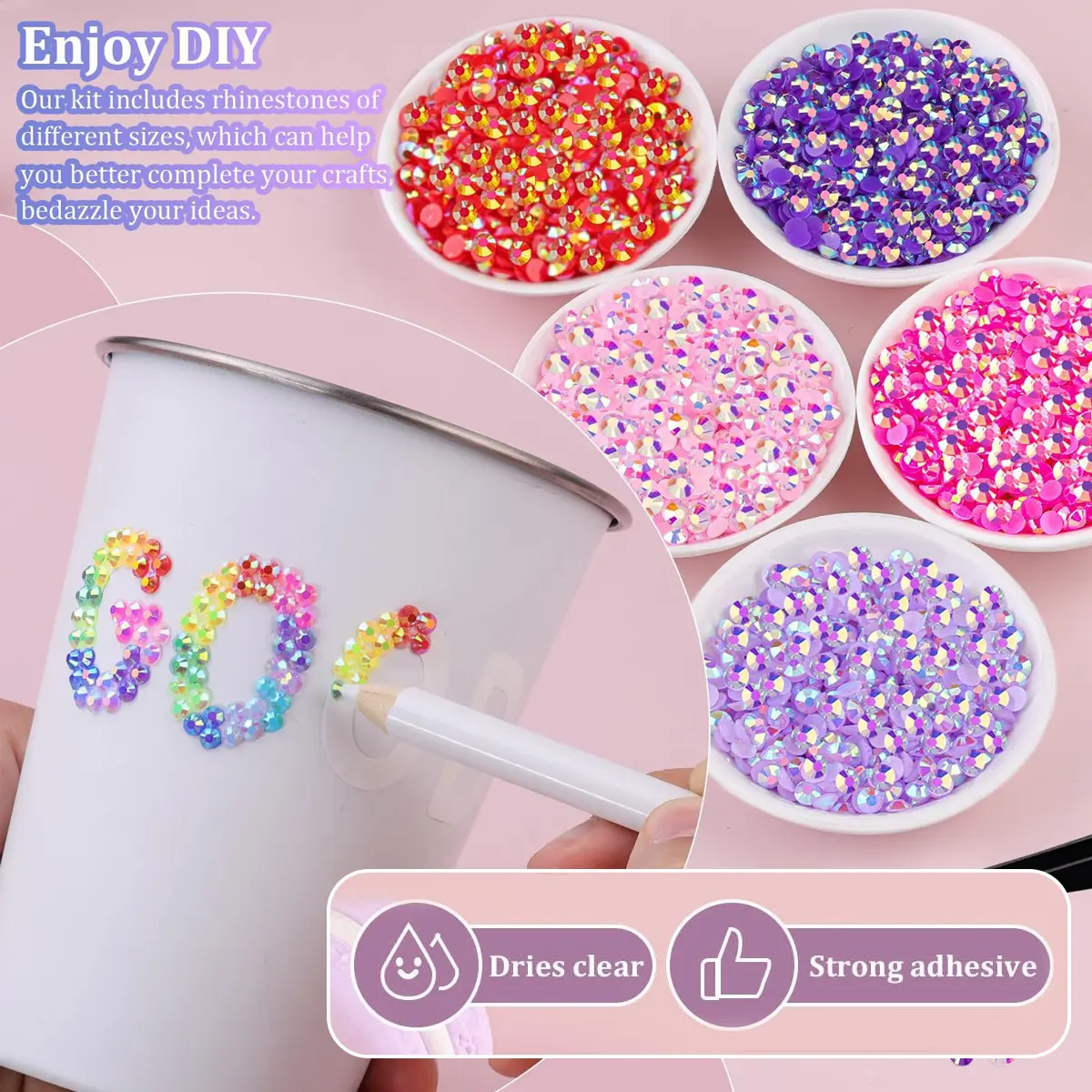 Level up your DIY projects with this stunning rhinestone kit. Featuring 3mm mixed resin rhinestones in vibrant assorted colors, it’s perfect for adding eye-catching shine to nails, clothes, sneakers, phone cases, tumblers, dance costumes, festival outfits, cheer bows, and more. The kit also includes essential DIY crafting tools such as tweezers, a pick-up pen, and additional Gifted tools, making it easy for beginners and experienced crafters alike to start decorating right away. Whether you're crafting for fun or creating custom pieces for your small business, this kit makes every design pop!