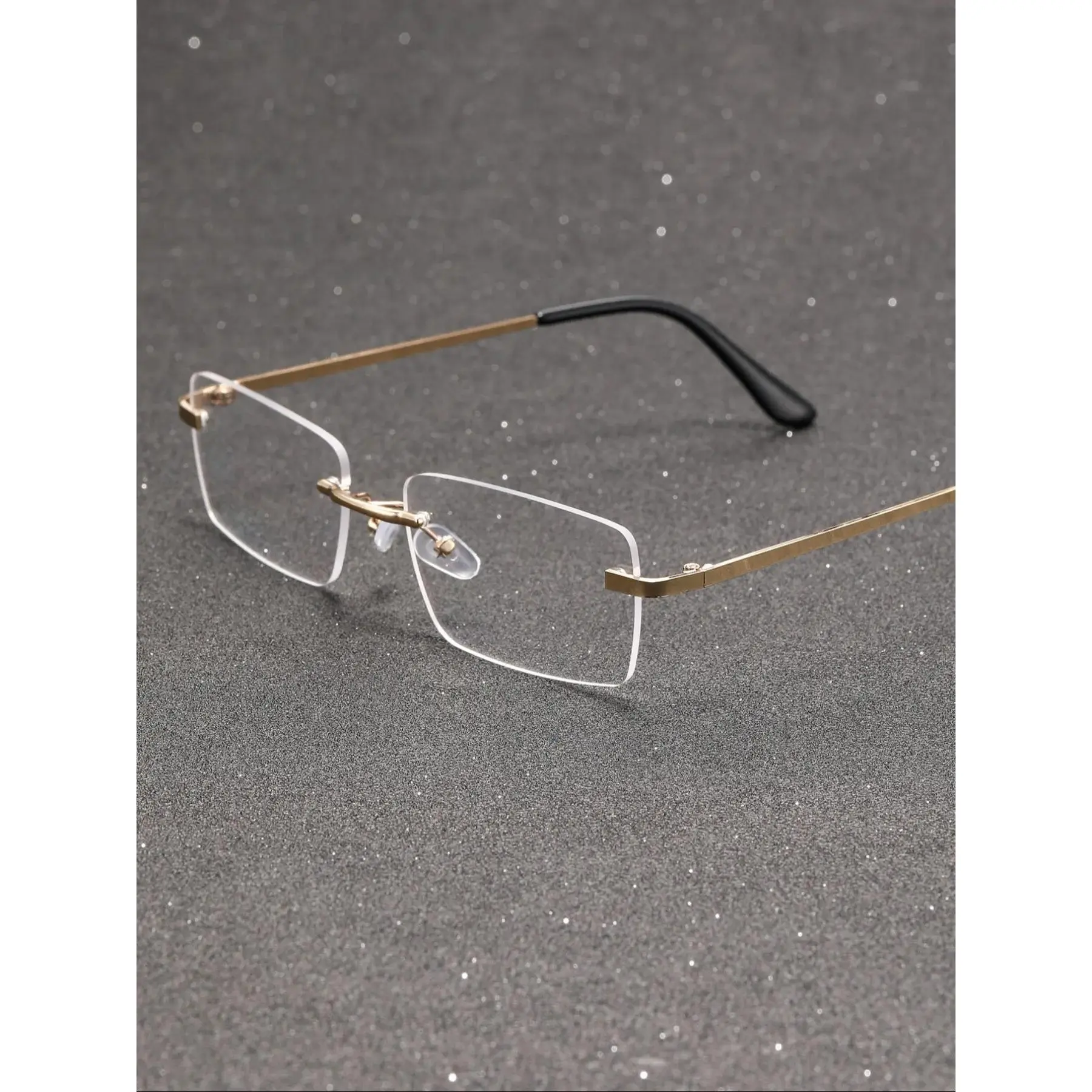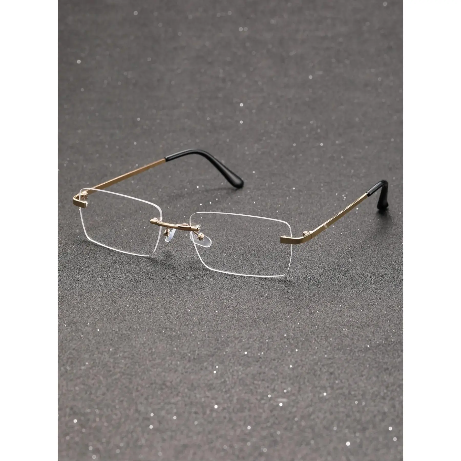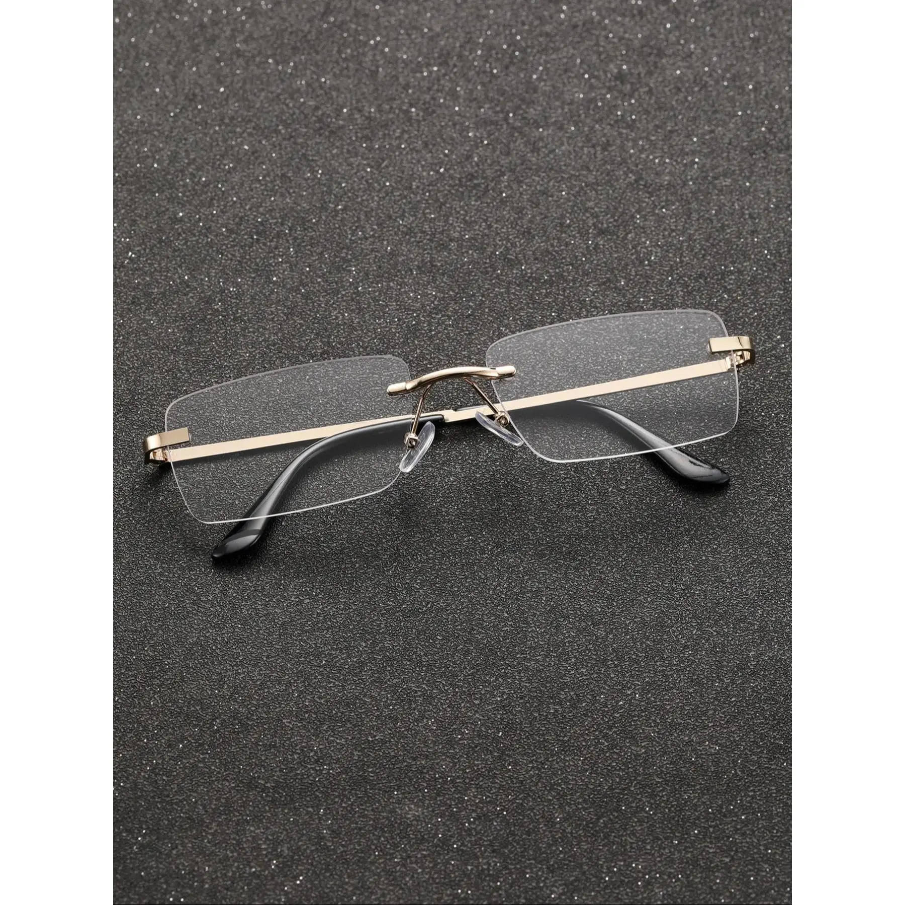 Rectangular Gold Rim Frameless Transparent Glasses, Lightweight, Light, Casual Daily Wear, Valentine's Day Vacation Accessory