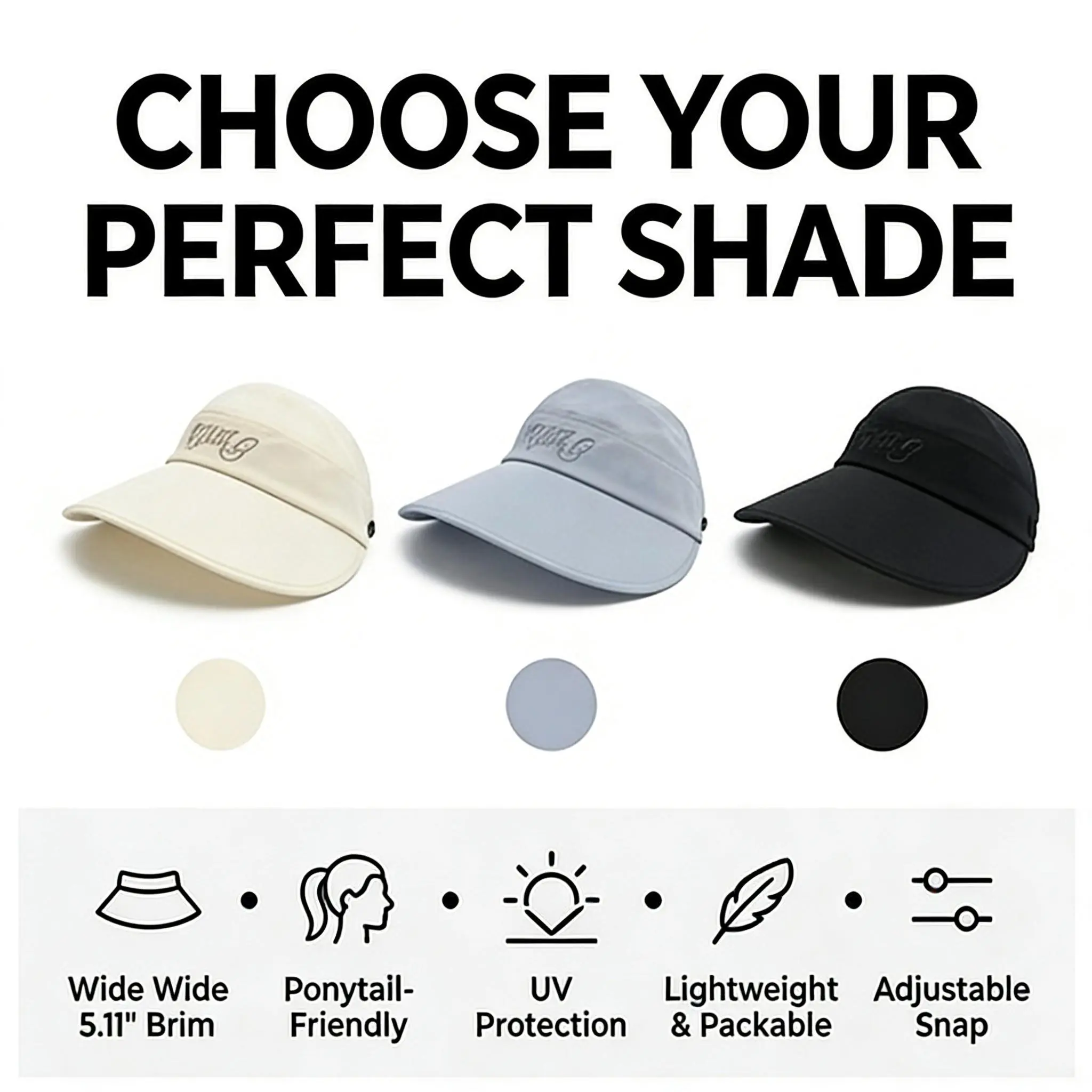 🌞 Large Brim Sun Visor Hat – UPF 50+ UV Protection