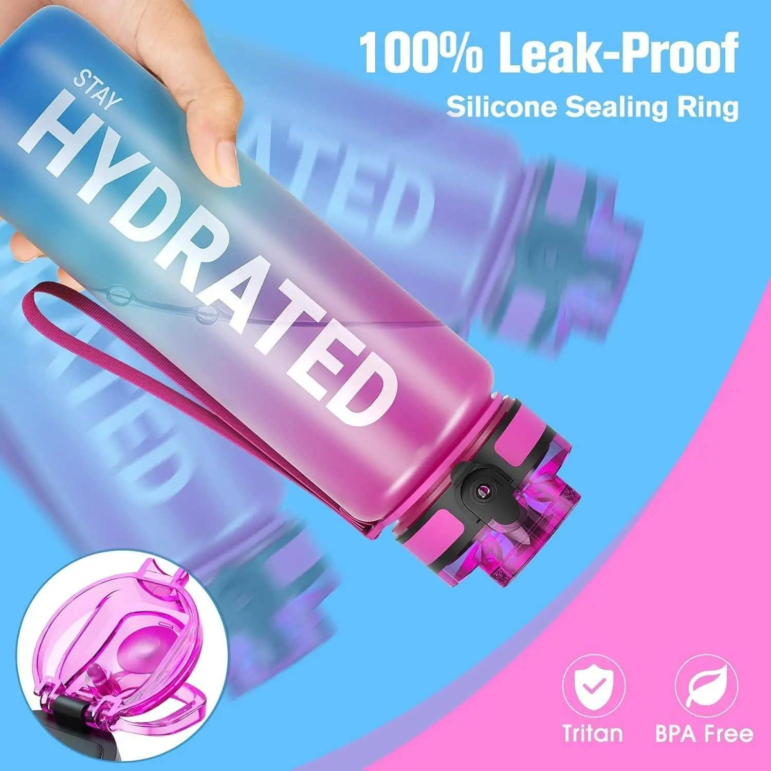 ·Easy Open yet Leakproof: this water bottle features a leakproof lid with a flip-lock to avoid leakage when you throw it in your bag. the lid adapts a flip-up mechanism so you can open it easily with only one hand and one press.
