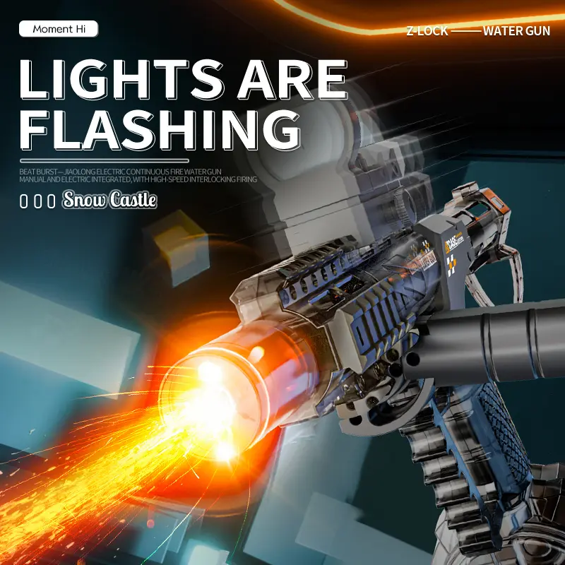 Flood Dragon 2026 New Automatic Electric Water Gun with Large Capacity Powerful Spray Super Long Shooting & Lighting Function USB Charging Cable Durable FlameSpray Toy Gift for Adults & Children