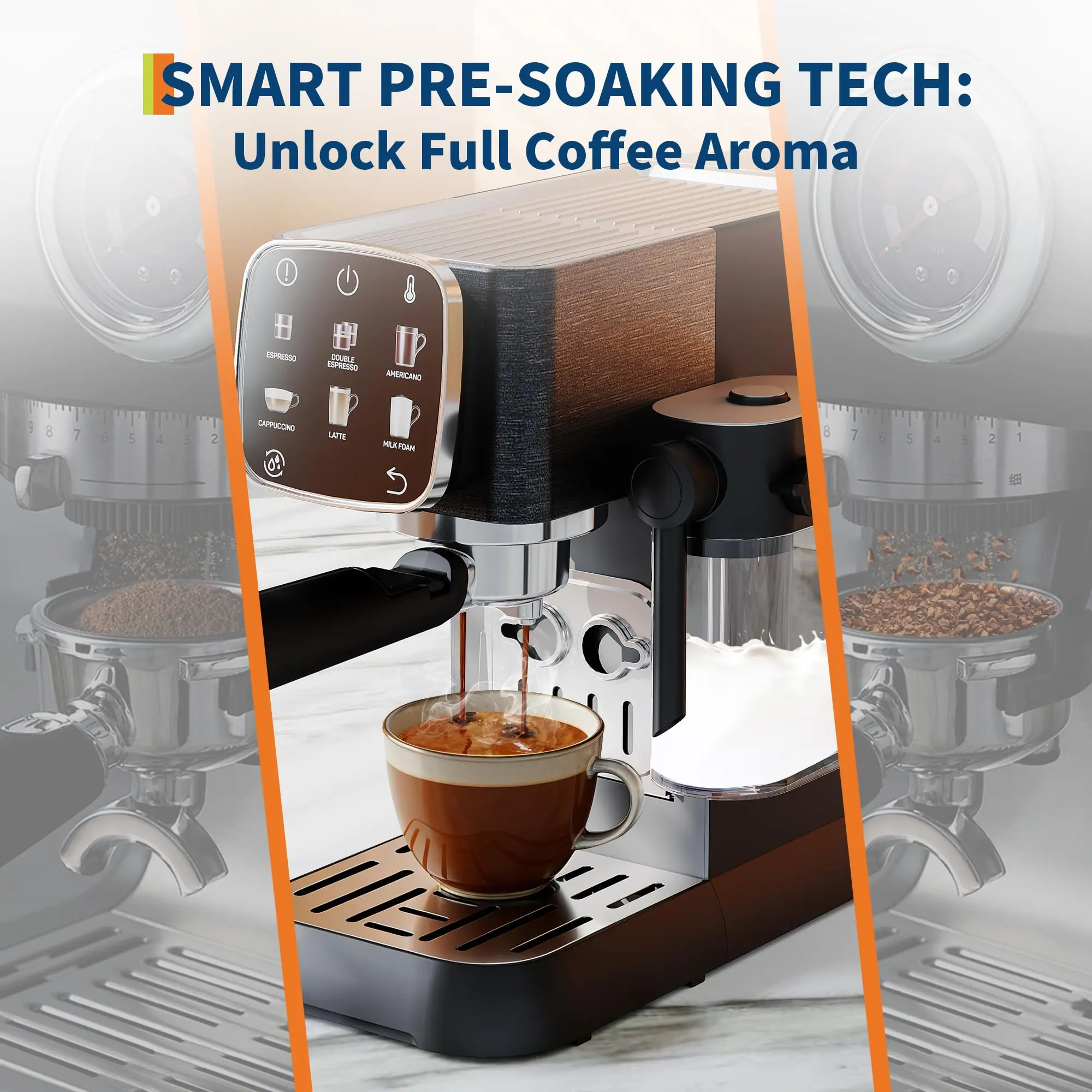 ·2.20-bar Italian pump and 1350W heating system ensure stable, fast extraction; ready to brew in just 3 seconds for rich aroma and full-bodied flavor every time.