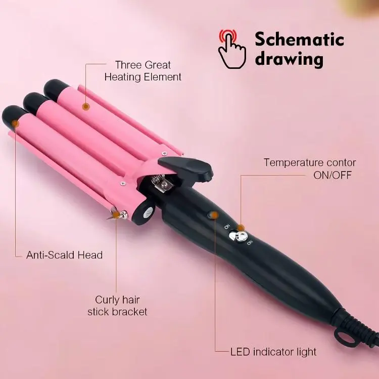 3-Barrel Hair Waver with 22mm Barrels, Styling Tool for Creating Wave Patterns, Suitable for Hair Styling Use by Women and Girls