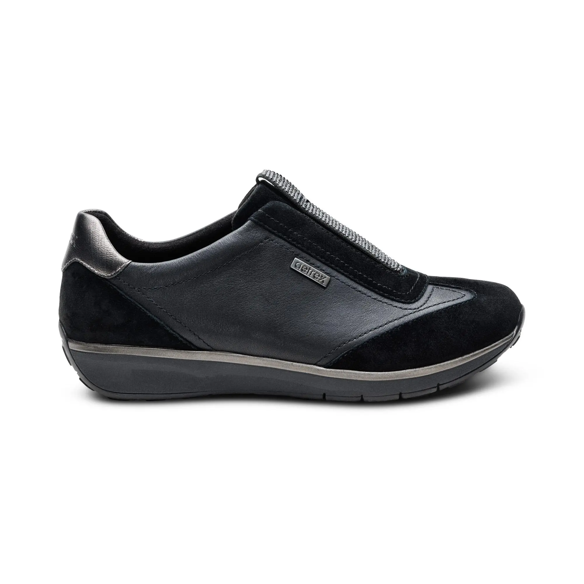 The Aetrex Orthotic System is Built-In to every pair: Our insole features arch support that helps to stabilize your body, align your feet and relieve common foot pain (ie. plantar fasciitis, heel pain & arch pain) Our insole features UltraSky™ cushioning to provide pressure relief & extra comfort Our insole is lined with microfiber treated with antimicrobial technology to help fight every day odors Details: Adjustability: Stretchy gore Upper Material: Leather Outsole Material: Rubber Removable Insole: Yes Heel Height: 0.9" Padded heel for extra cushioning