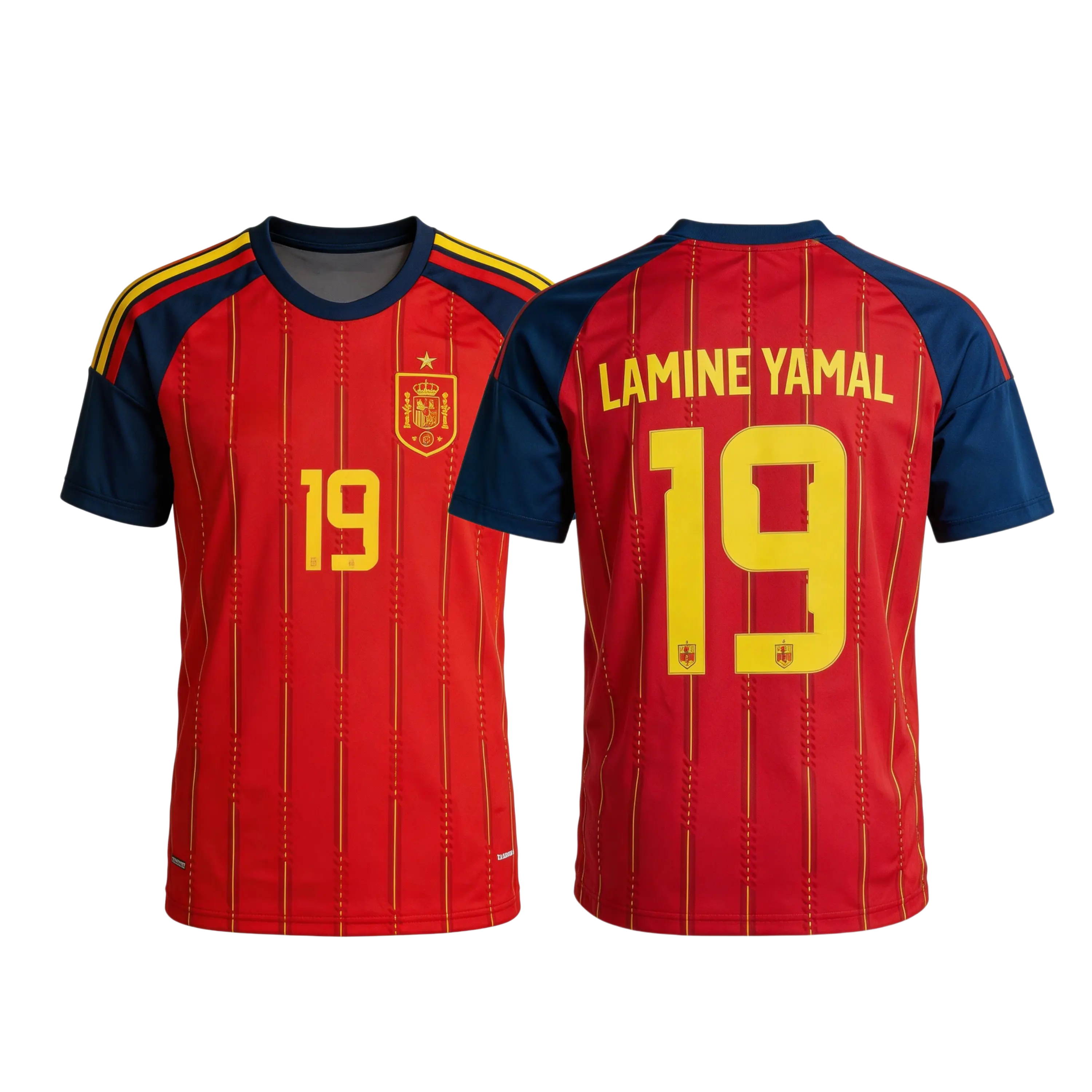 2026 New World Cup Spain National Team Home No.19 Yamal Short-sleeved Football Jersey Fan Version