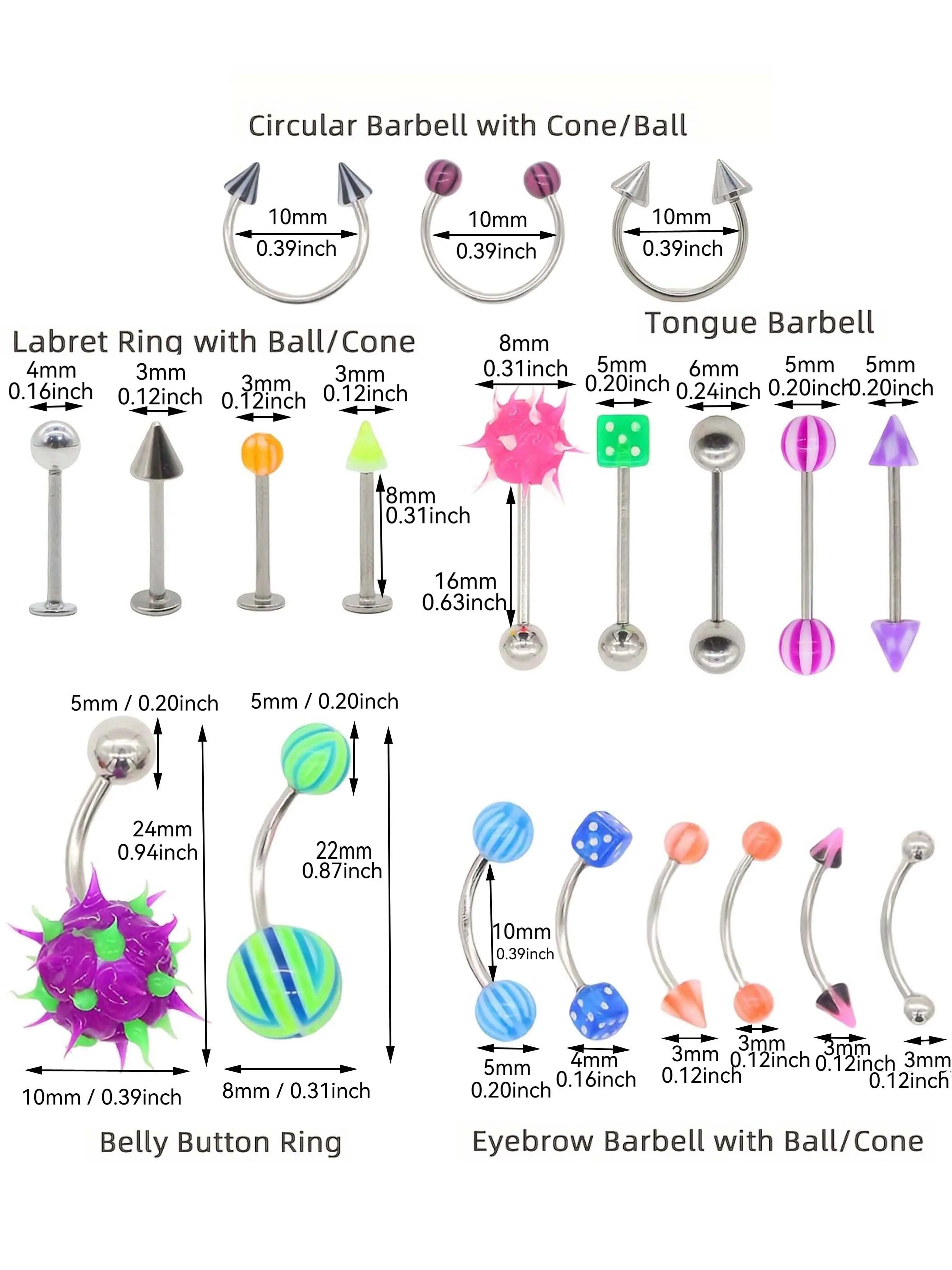 CrazyPiercing Lot of 110PCS Body Jewelry Piercing Eyebrow Navel Belly Tongue Lip Bar RingCrazyPiercing Lot of 110PCS Body Jewelry Piercing Eyebrow Navel Belly Tongue Lip Bar RingCrazyPiercing Lot of 110PCS Body Jewelry Piercing Eyebrow Navel Belly Tongue Lip Bar Ring