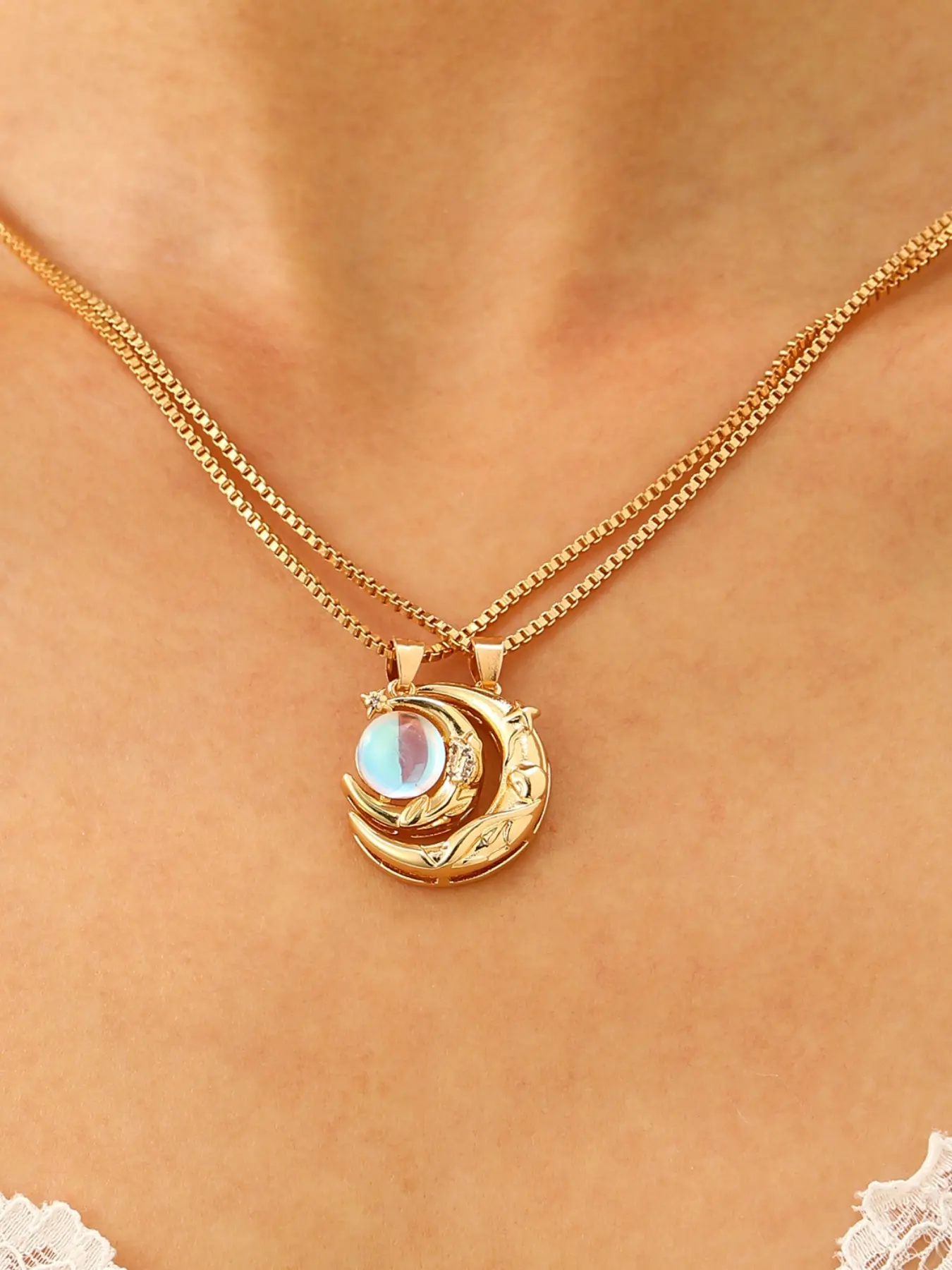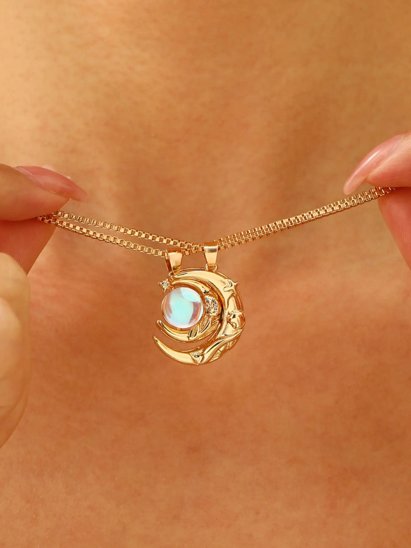 Gold Moon Pendant Necklace for Women, Dainty Moonstone Crescent Moon Choker, Elegant Celestial Jewelry for Daily Wear, Perfect Birthday Anniversary Gift for Her