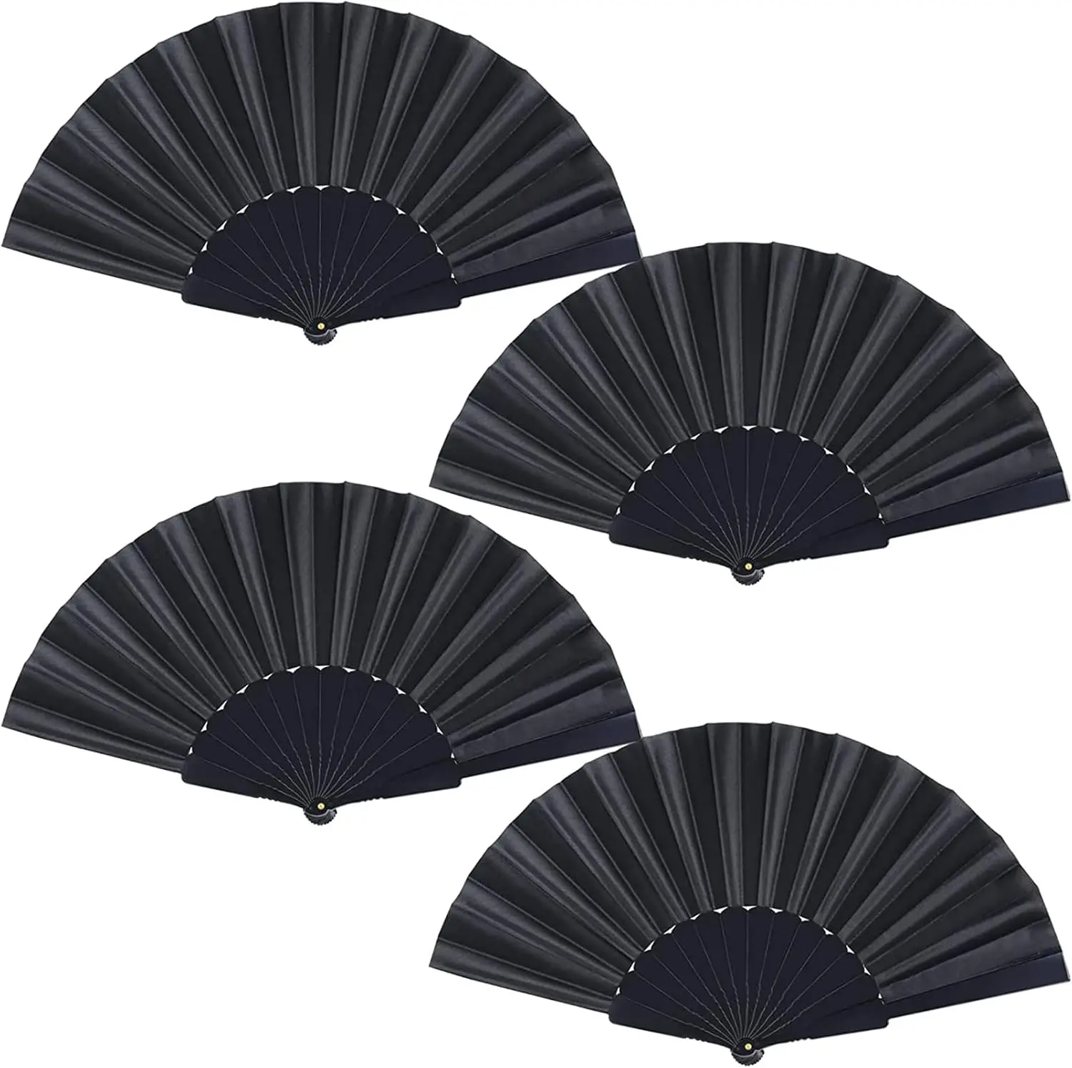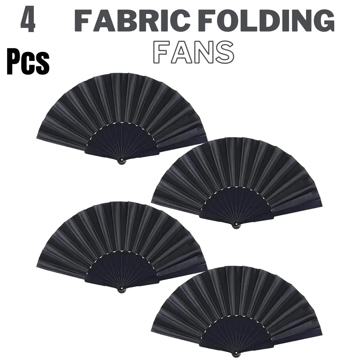 Black Folding Hand Fans Fabric Fans Chinese Japanese Style Summer Handheld Fan for Party, Wedding, Gifts, Wall Decoration,Photographic Props (Black-4pcs)