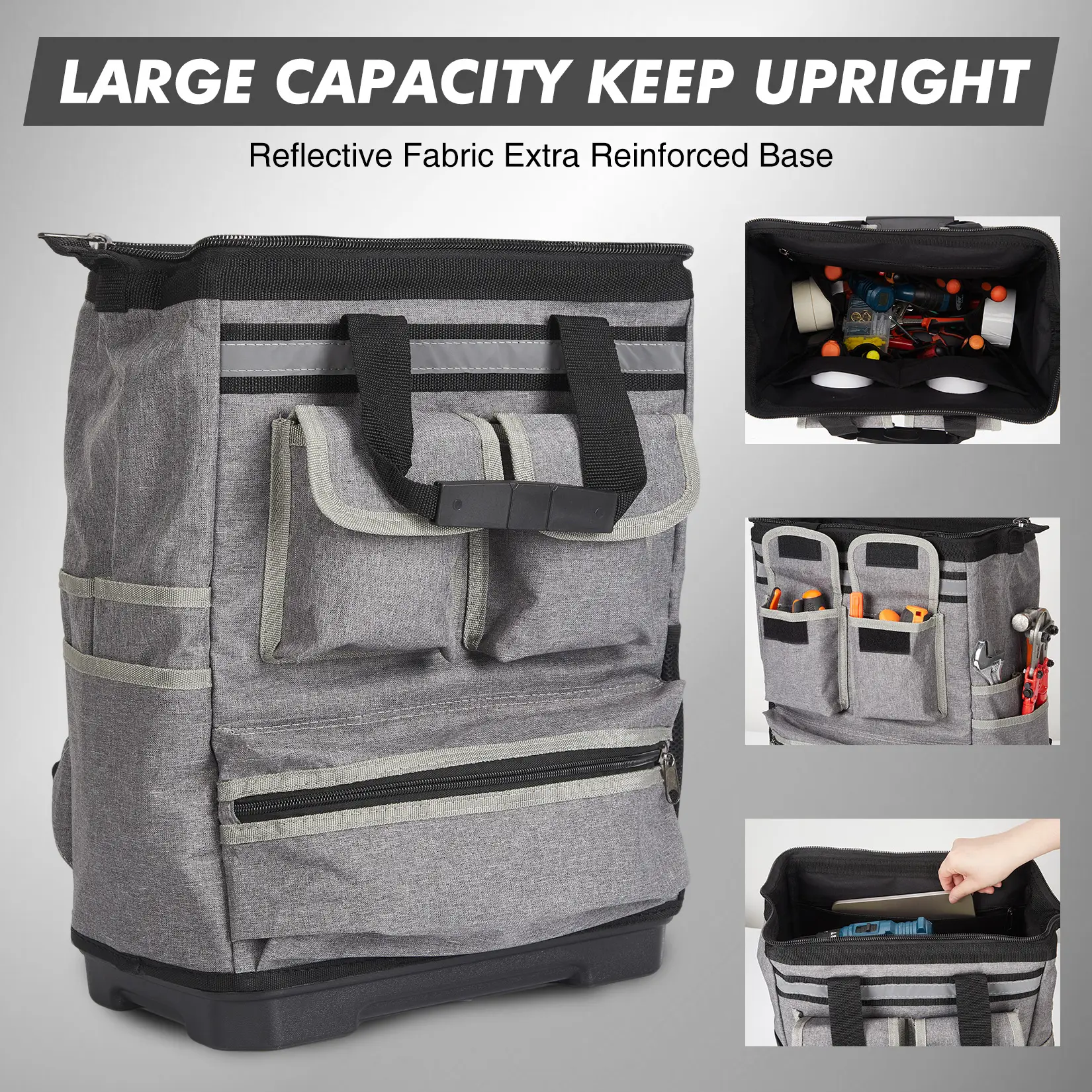 ·GENEROUS CAPACITY – Measures 13.8 x 8.7 x 18.9 in, providing ample room for daily essential tools. Suitable for landscapers, woodworkers, electricians, plumbers, DIY enthusiasts, and homeowners.