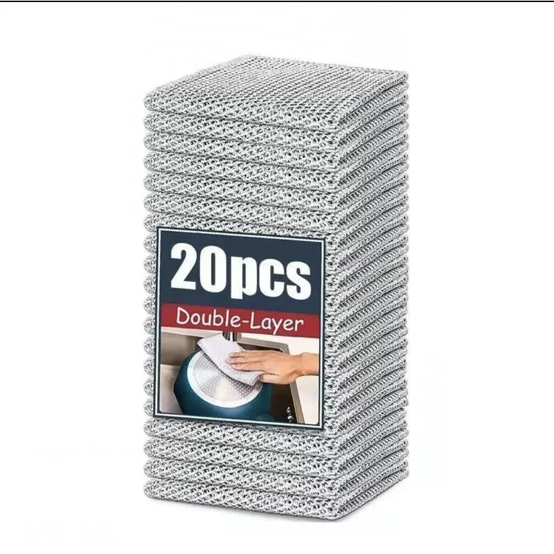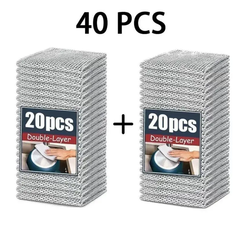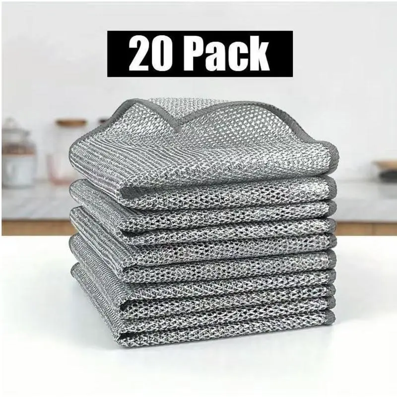 20/10 PCS Double Layer Wire Dish Cloth, Steel Wire Cleaning Cloth, Multi-purpose Non-Scratch Wire Dishcloth Rag for Cookware, Sinks, Dishes, Cooktops, Household Items