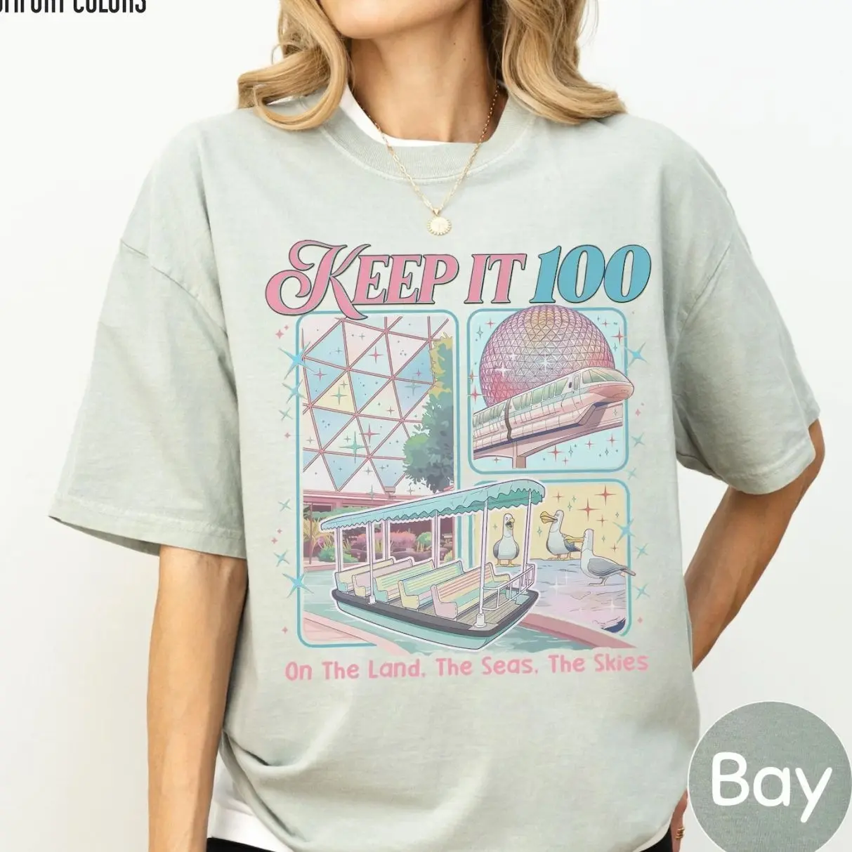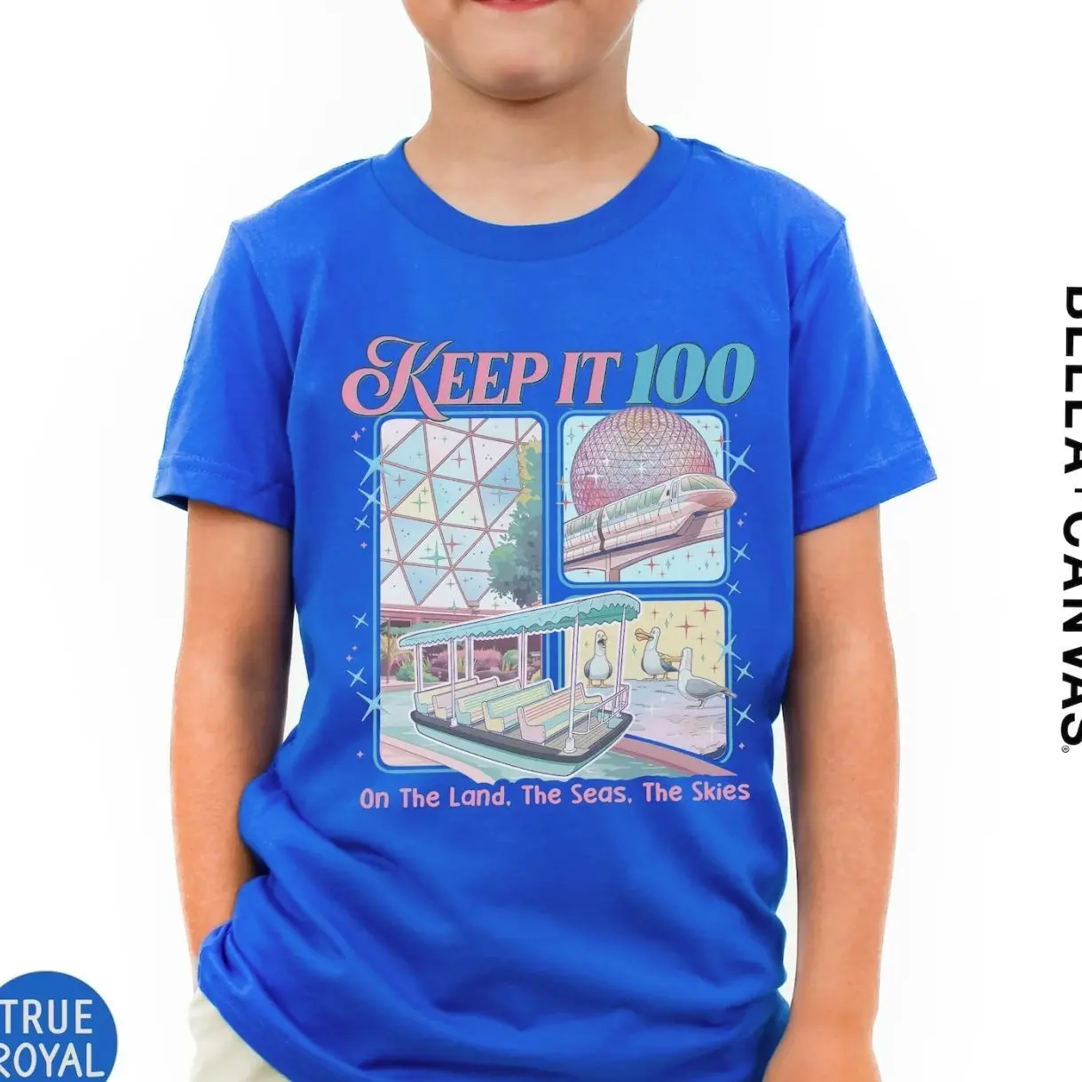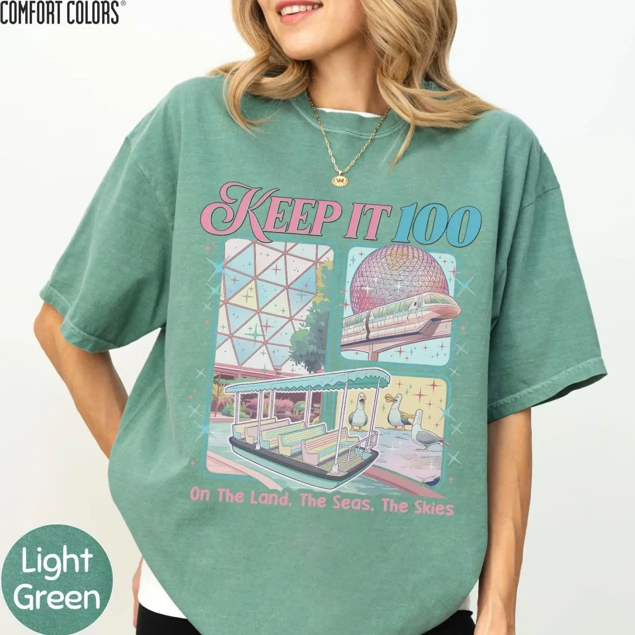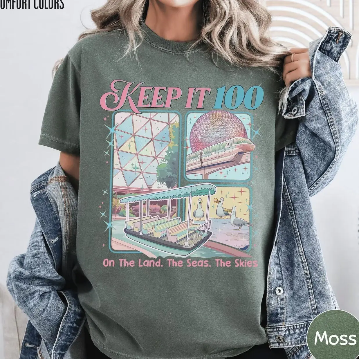 Epcot Inspired Keep It 100 Shirt, The Land The Seas The Skies Tee, WDW Family Vacation Gift I5C