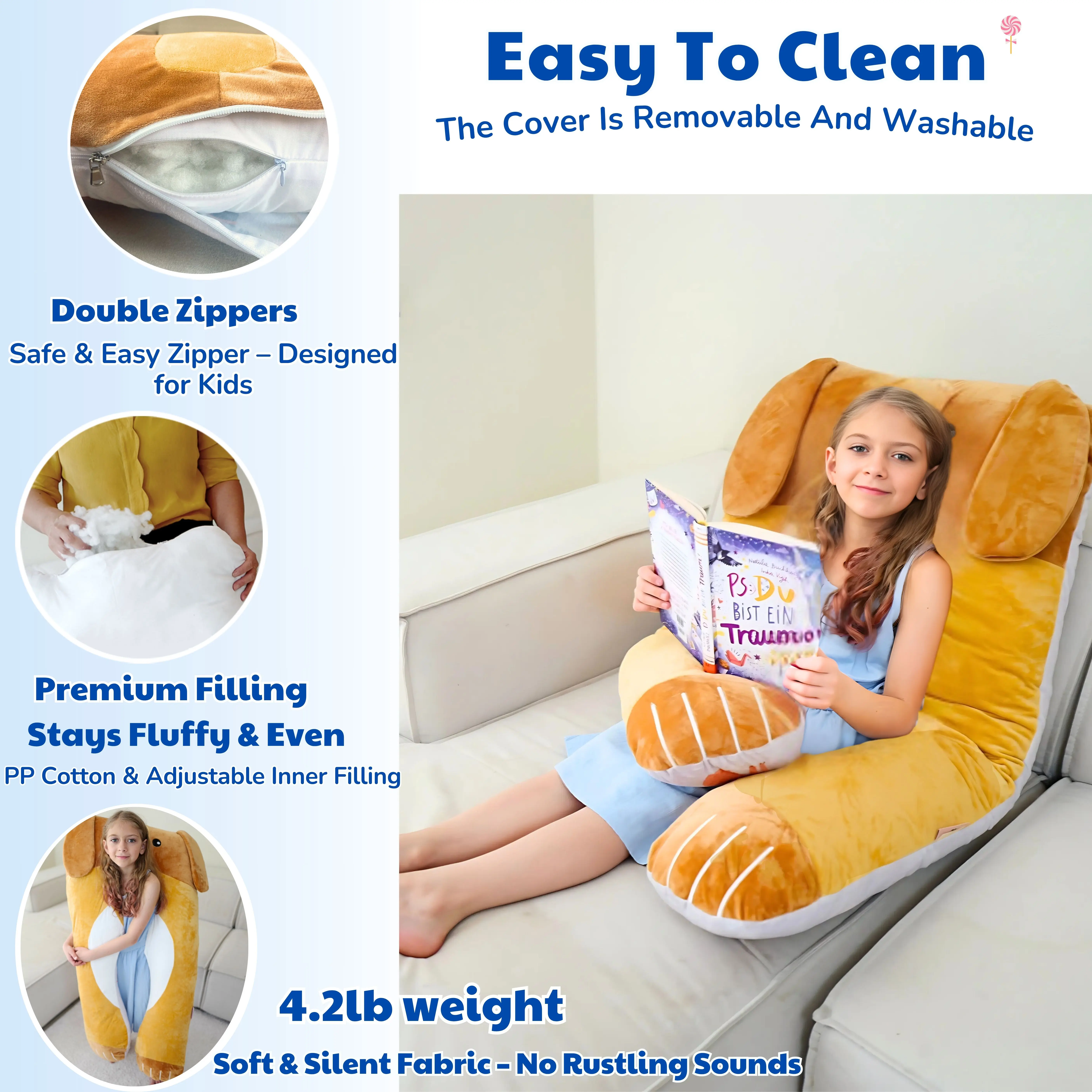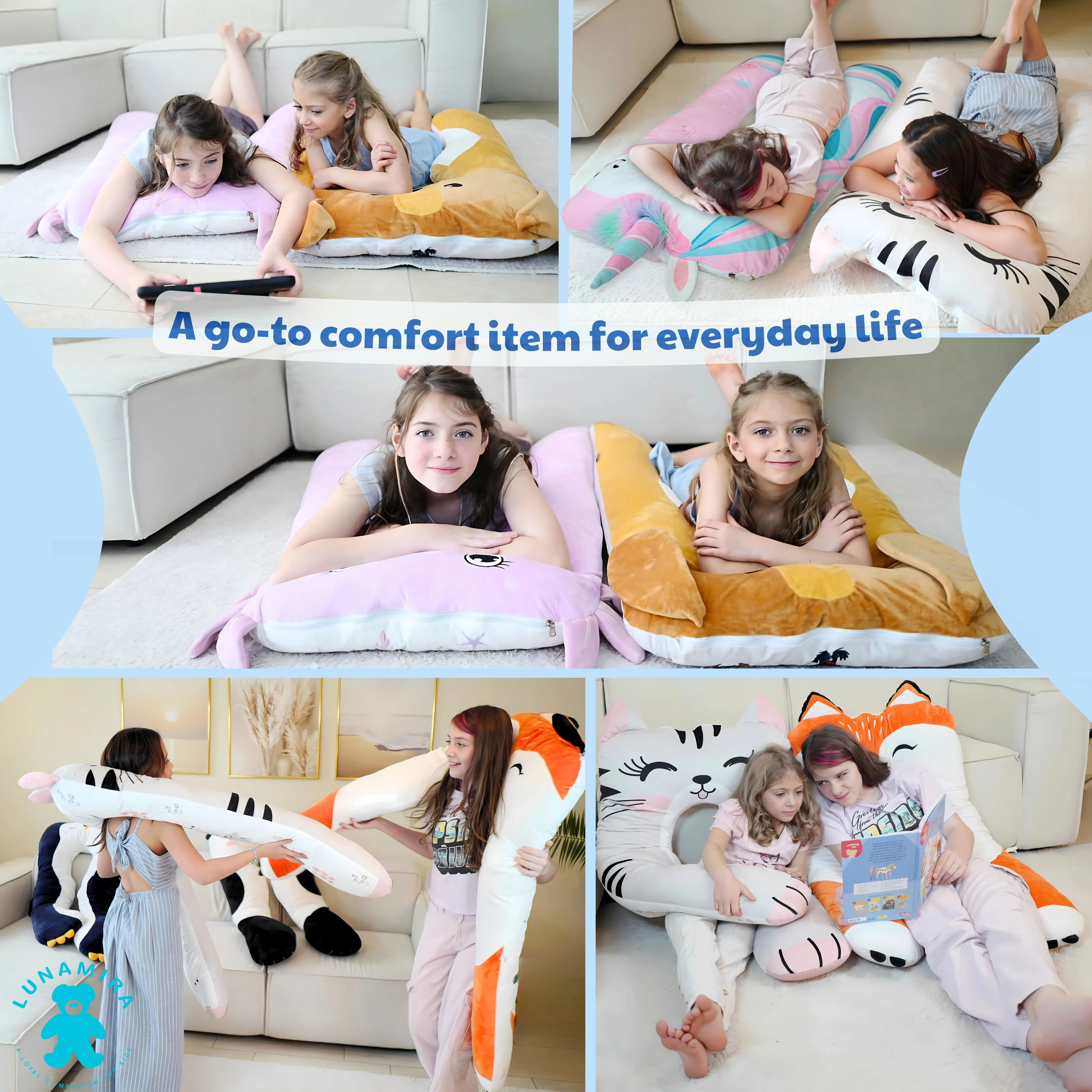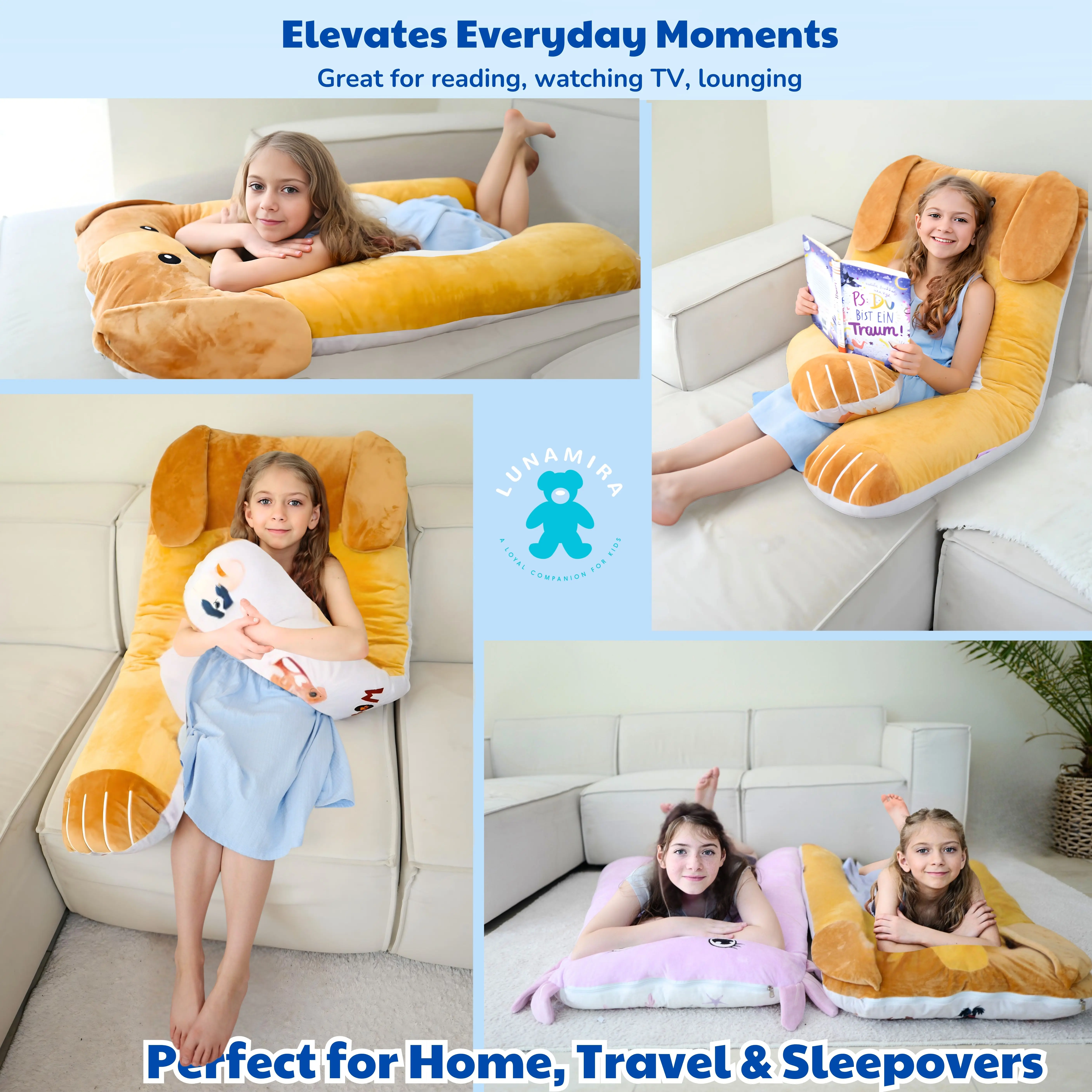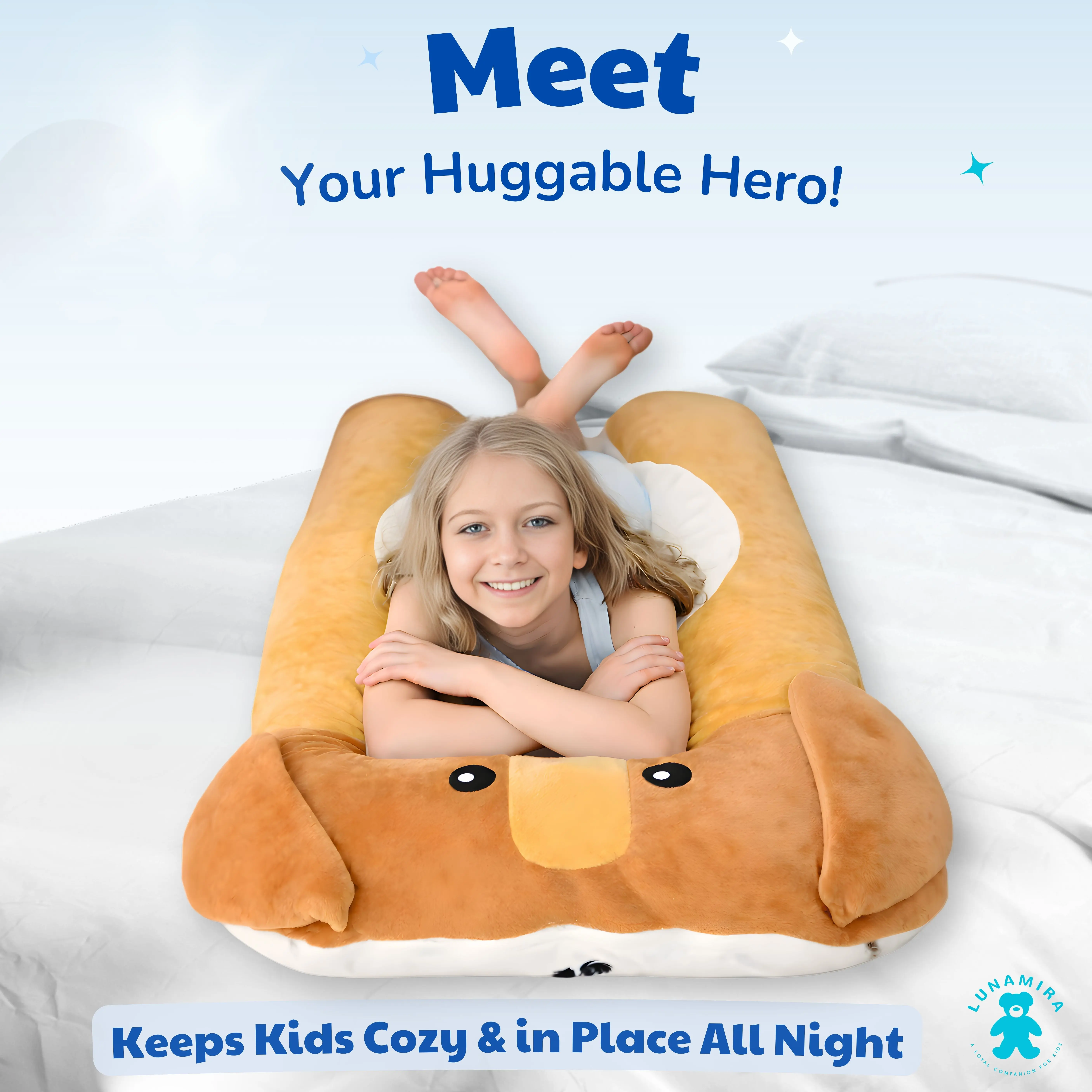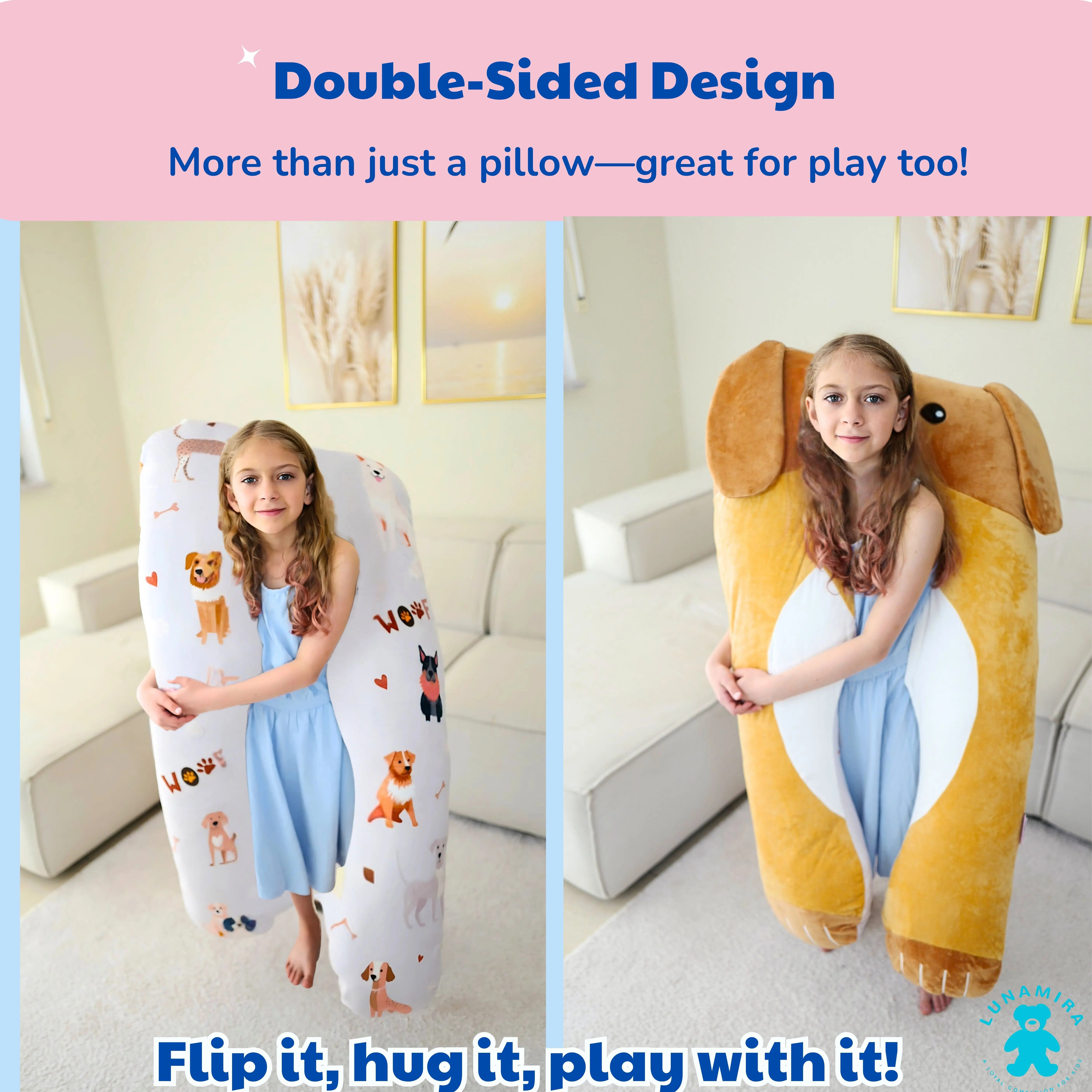 LUNAMIRA Kids Dog Body Pillow for Children - Giant Stuffed Dog Plush Animal, U-Shaped Body Pillow for Boys Girls, Soft Cuddly Huggable Plushie Toy, Perfect for Sleep & Play